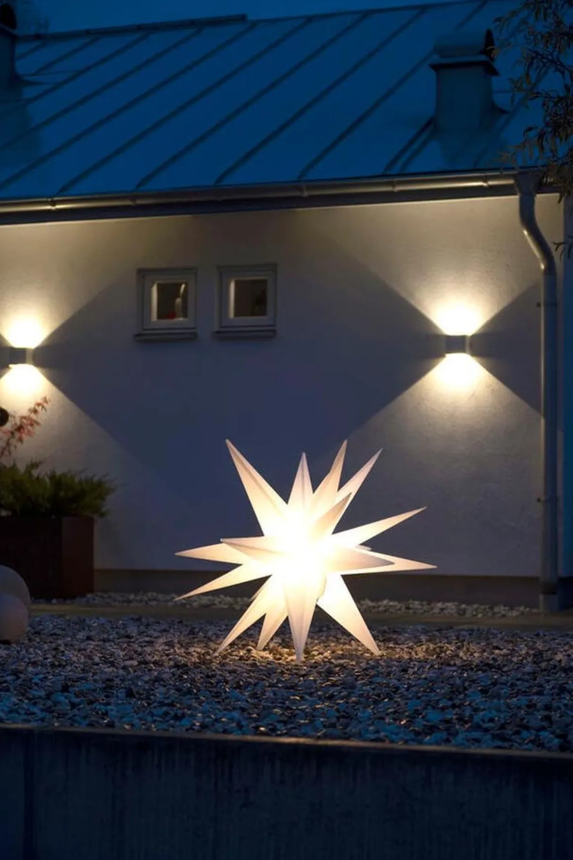 Skap en magisk julestemning med denne massive hvite plast-adventsstjernen med et imponerende 3D-design. Med innebygd LED-belysning sprer den et varmt og vakkert lys – perfekt for både terrassen og innendørs!