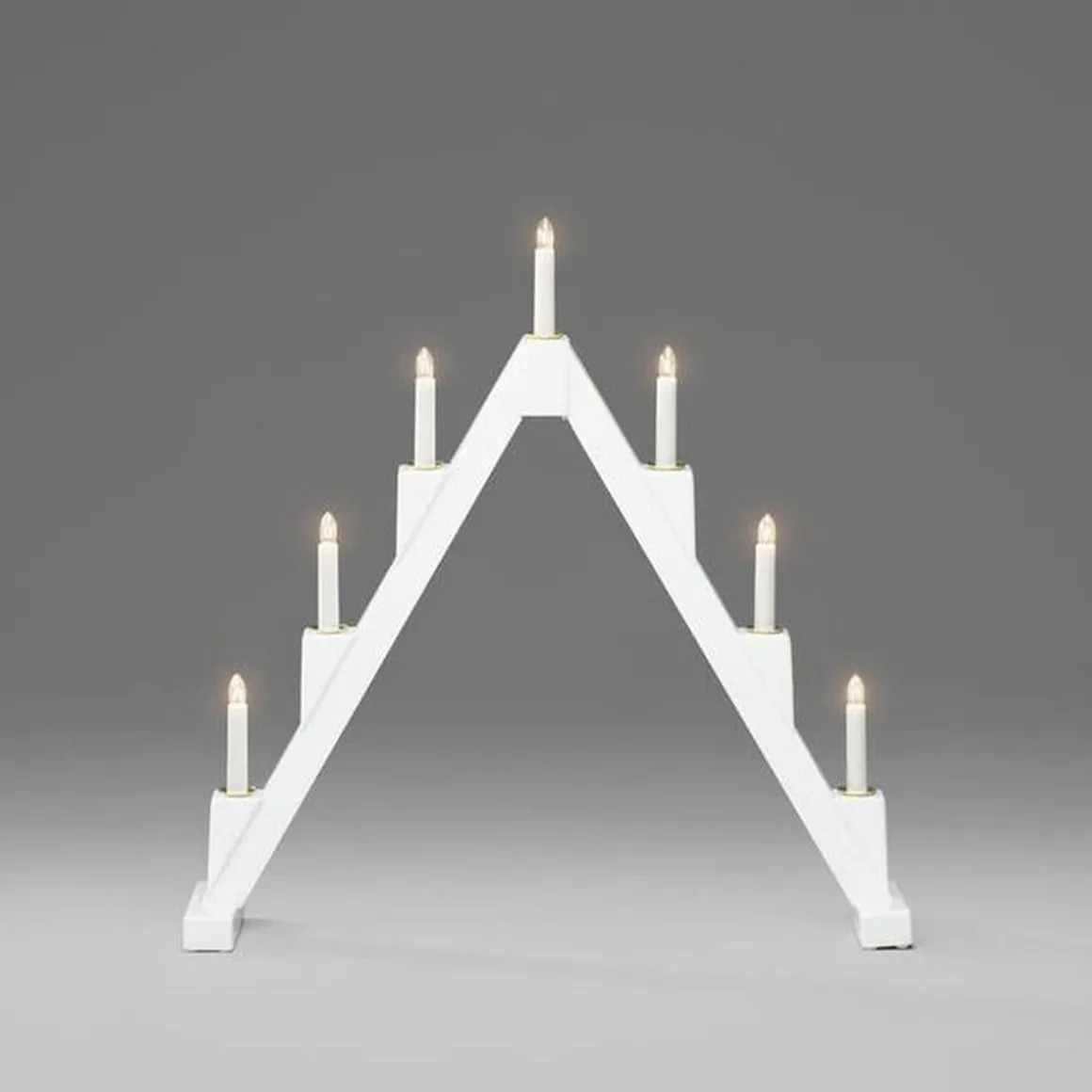 Klassisk adventslysestake i lakkert tre med elegante messingfargede metalllyshylser – en tidløs favoritt som sprer atmosfære i vintermørket. Med 7 varme hvite lys og et smart sammenleggbart design er den både vakker i vinduet og enkel å oppbevare til neste jul.