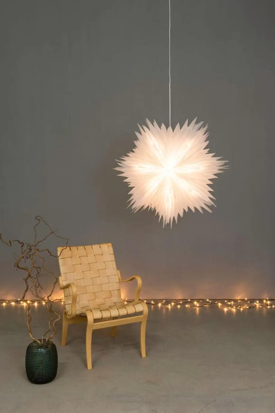 Imponerende adventsstjerne i gyllent papir med elegant perlemoreffekt. Med praktisk snorhenger og hvit snor med bryter – en tidløs klassiker som skaper en varm, koselig og hjemmekoselig julestemning.