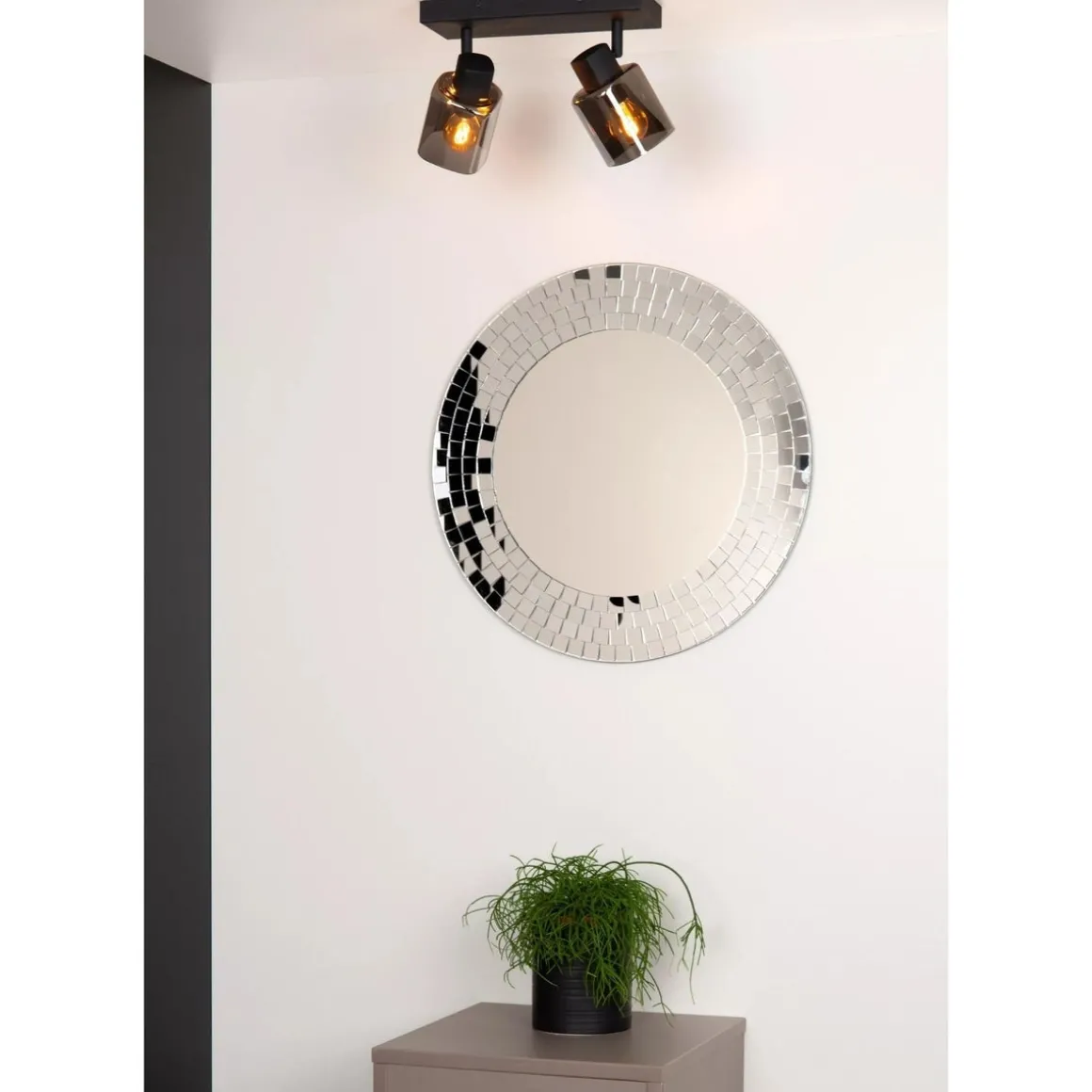 Stilfull taklampe med 2 justerbar takspott i lekkert røykfarget glass.