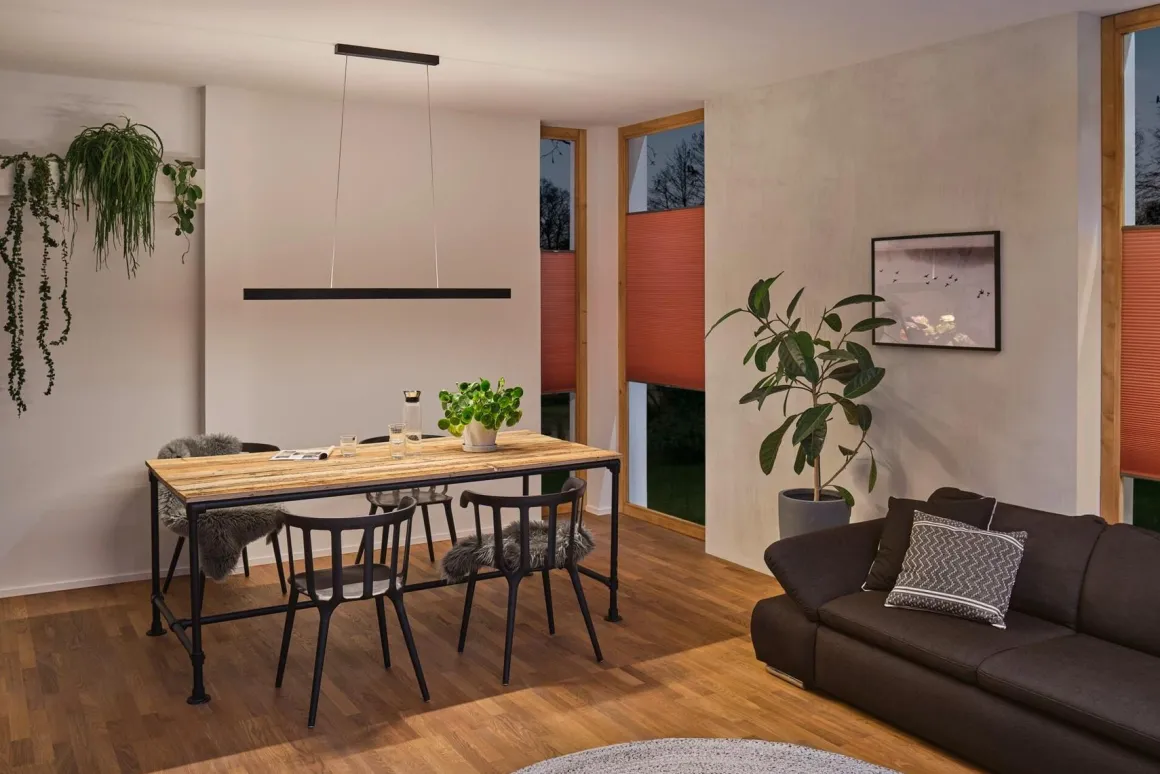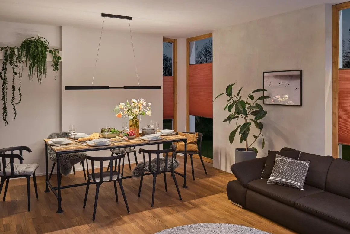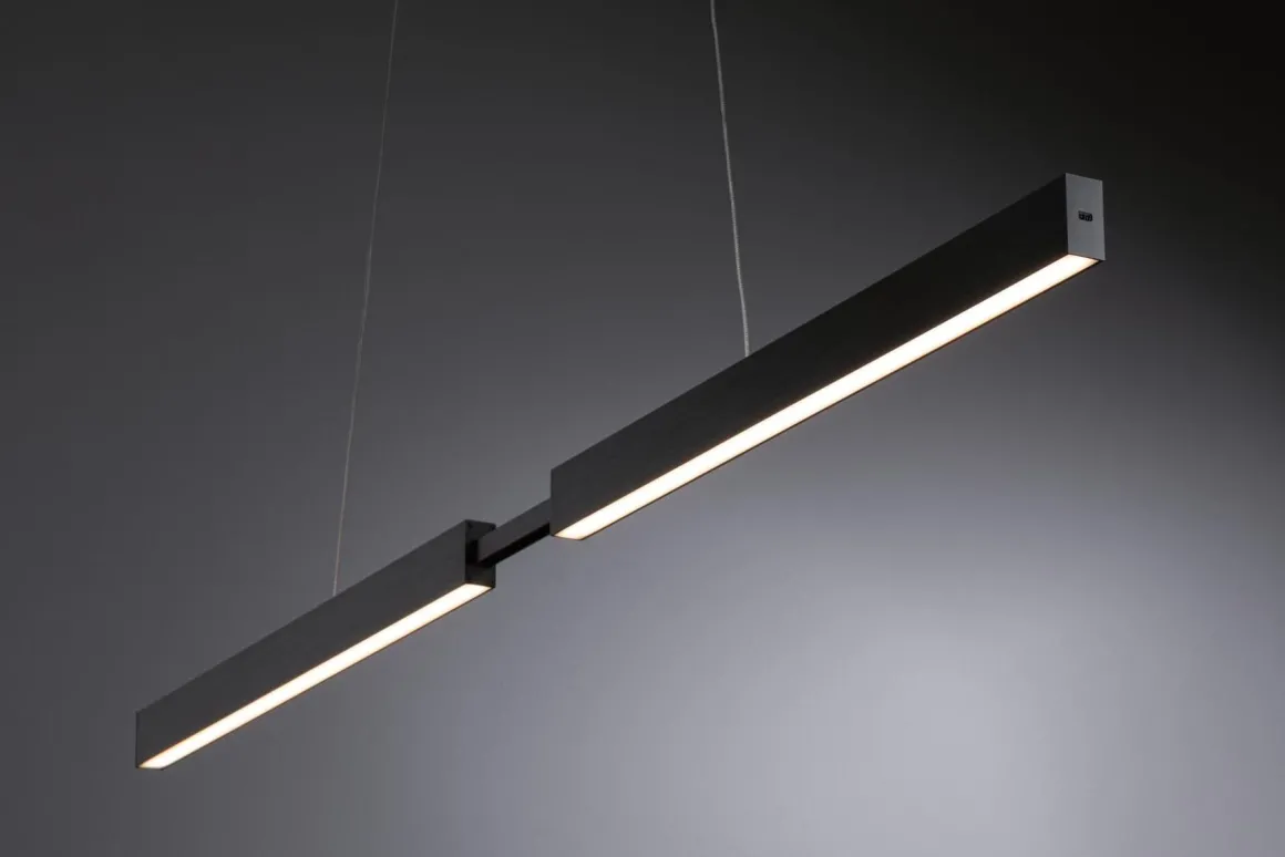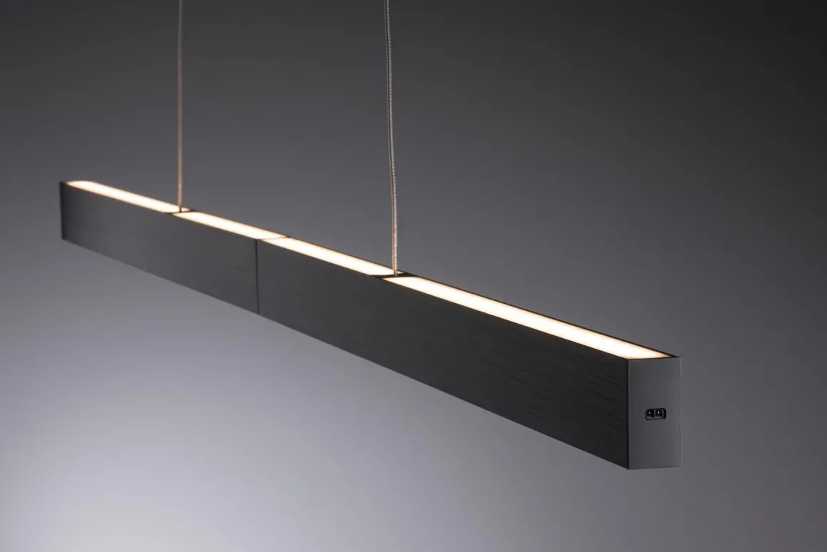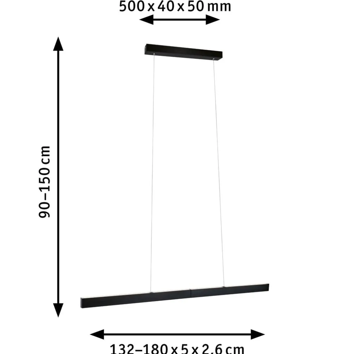 Den justerbare Aptare LED pendelarmaturen i svart med 2700K er perfekt for å belyse uttrekkbare bord. Dette gjør den spesielt egnet som en elegant lysløsning i stuen eller spisestuen. Den kan enkelt justeres til lengden på bordet etter behov uten verktøy. Den kan justeres i høyden fra 70 cm til 150 cm og forlenges fra 132 cm til 180 cm. Takket være den toveis lysemisjonen gir pendelarmaturen behagelig omgivelseslys oppover og perfekt belysning av bordområdet nedover. Takket være sensoren som er integrert i armaturen, kan den slås av og på kontaktløst og dimmes trinnløst ved hjelp av den manuelle styringen. Sensoren registrerer bevegelser i en avstand på opptil 4 cm. Minnefunksjonen lagrer den sist brukte innstillingen til lyset slås på neste gang, for maksimal bekvemmelighet. Med en levetid på 30 000 timer gir Aptare pendelarmatur langvarig glede.