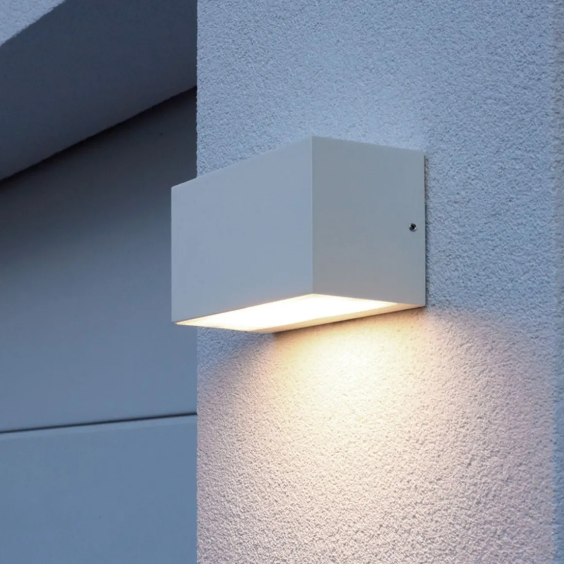 Stilren firkantet vegglampe for utendørsbruk i aluminiumstøp.