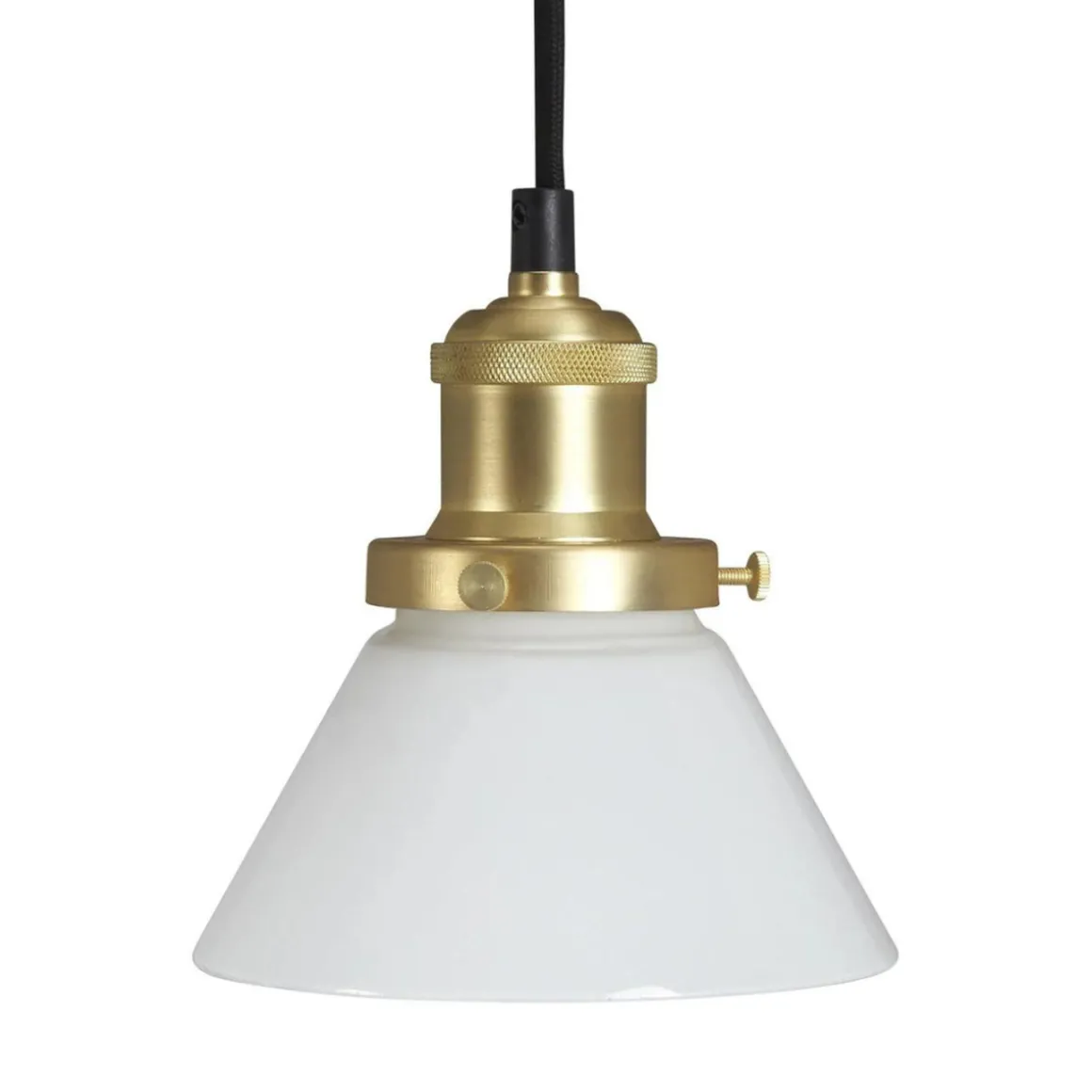 August, klassisk skomakerlampe med grønn glasskjerm og lampeholder i messingfarget metall, passer like godt i vinduet som over kjøkkenbenken.