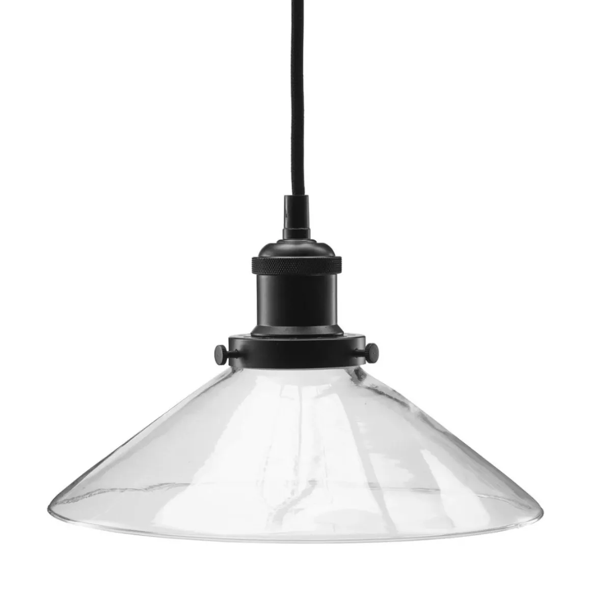 August, klassisk skomakerlampe med klar glasskjerm og lampeholder i matt sort metall, passer like godt i vinduet som over kjøkkenbenken.