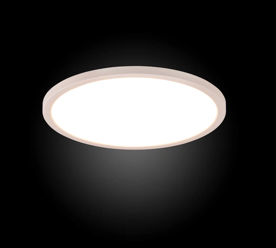 Aureo er en slank taklampe som leveres med fjernkontroll. Med fjernkontrollen kan lampen dimmes, slås av/på, endre fargetemperatur og farget lys, samt lampen kan settes i nattmodus.
