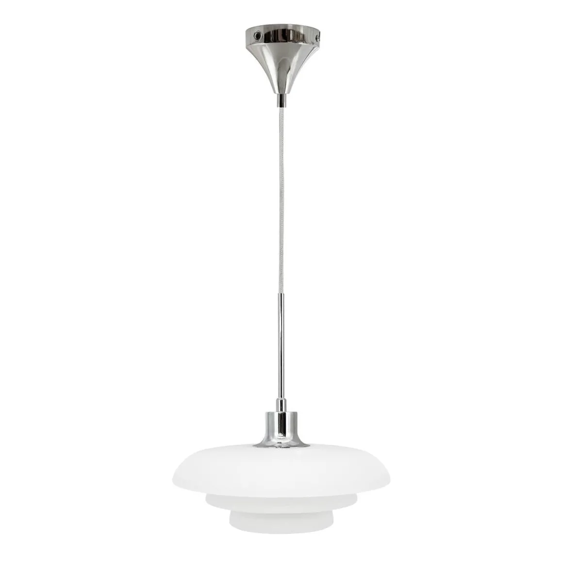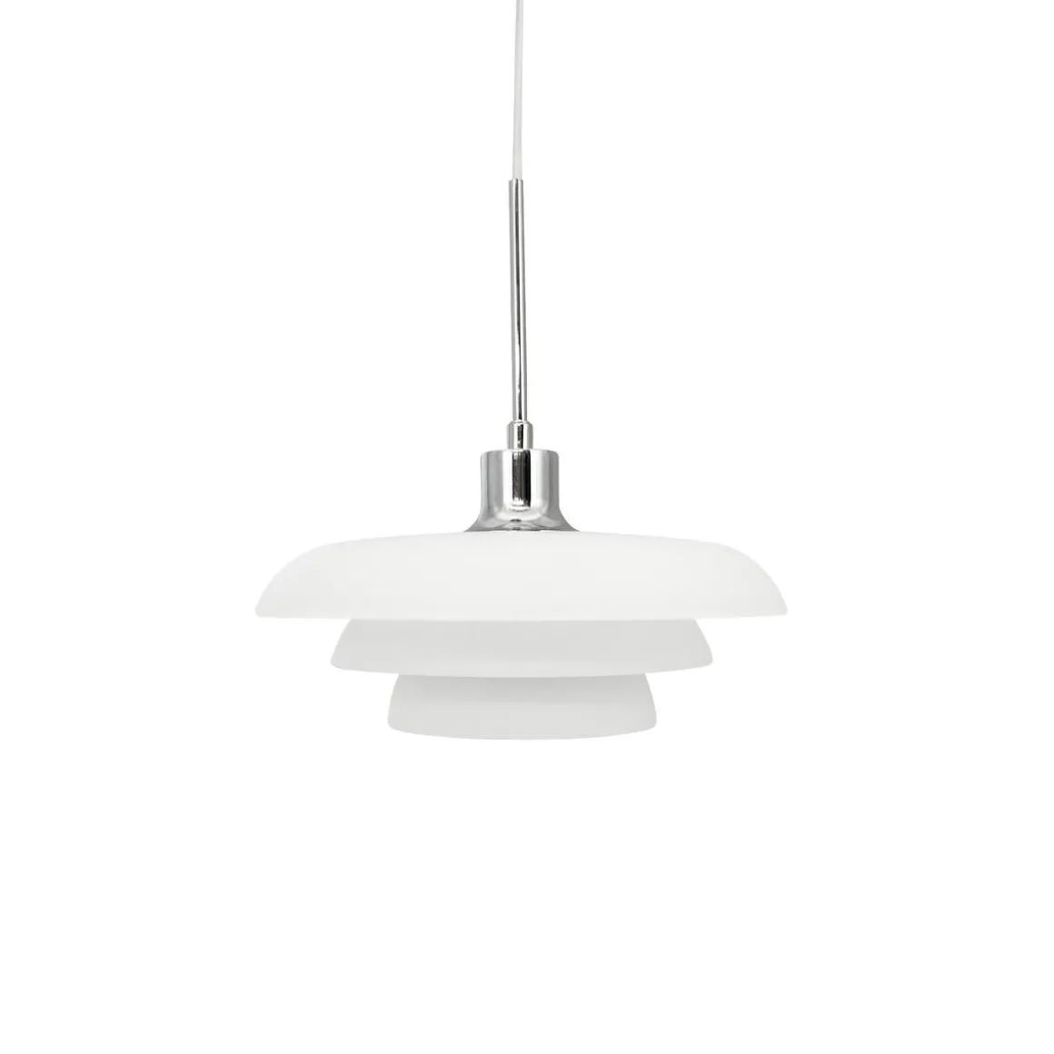 Med sin opalglass-finish og elegante kromdetaljer gir AVA Pendel et mykt og behagelig lys som skaper en koselig atmosfære. Det minimalistiske designet og de rene linjene gjør den ideell over spisebordet, på kjøkkenet eller i stuen.