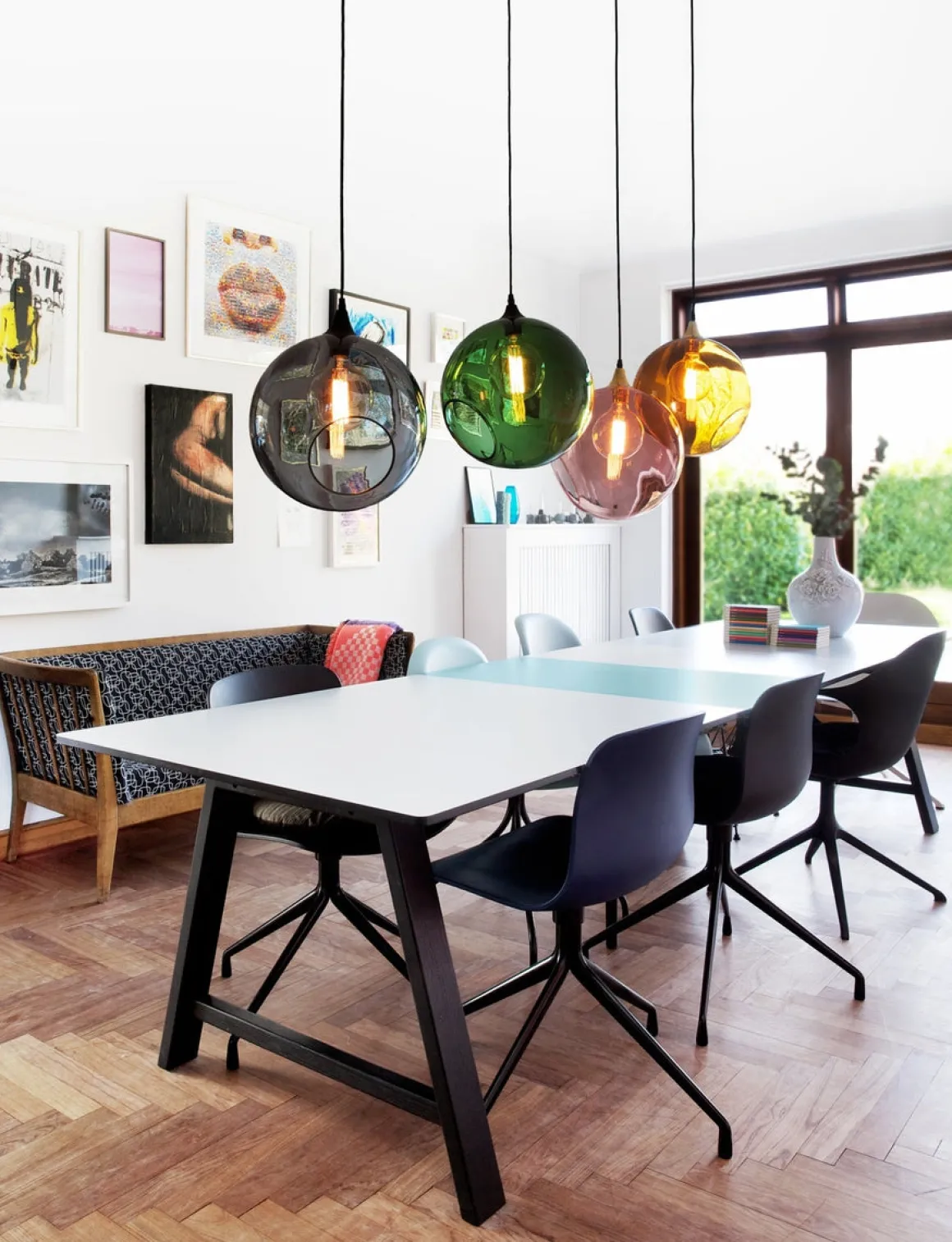Ballroom taklampe fra Design By Us er en enkel og vakker takpendel med flotte detaljer. Den klassiske formen kombinert med det sorte opphenget gjør denne lampen tidløs. Glasskuppelen er munnblåst og håndmalt. Kanten på det fasetterte hullet er malt i sølv som en vakker detalj.