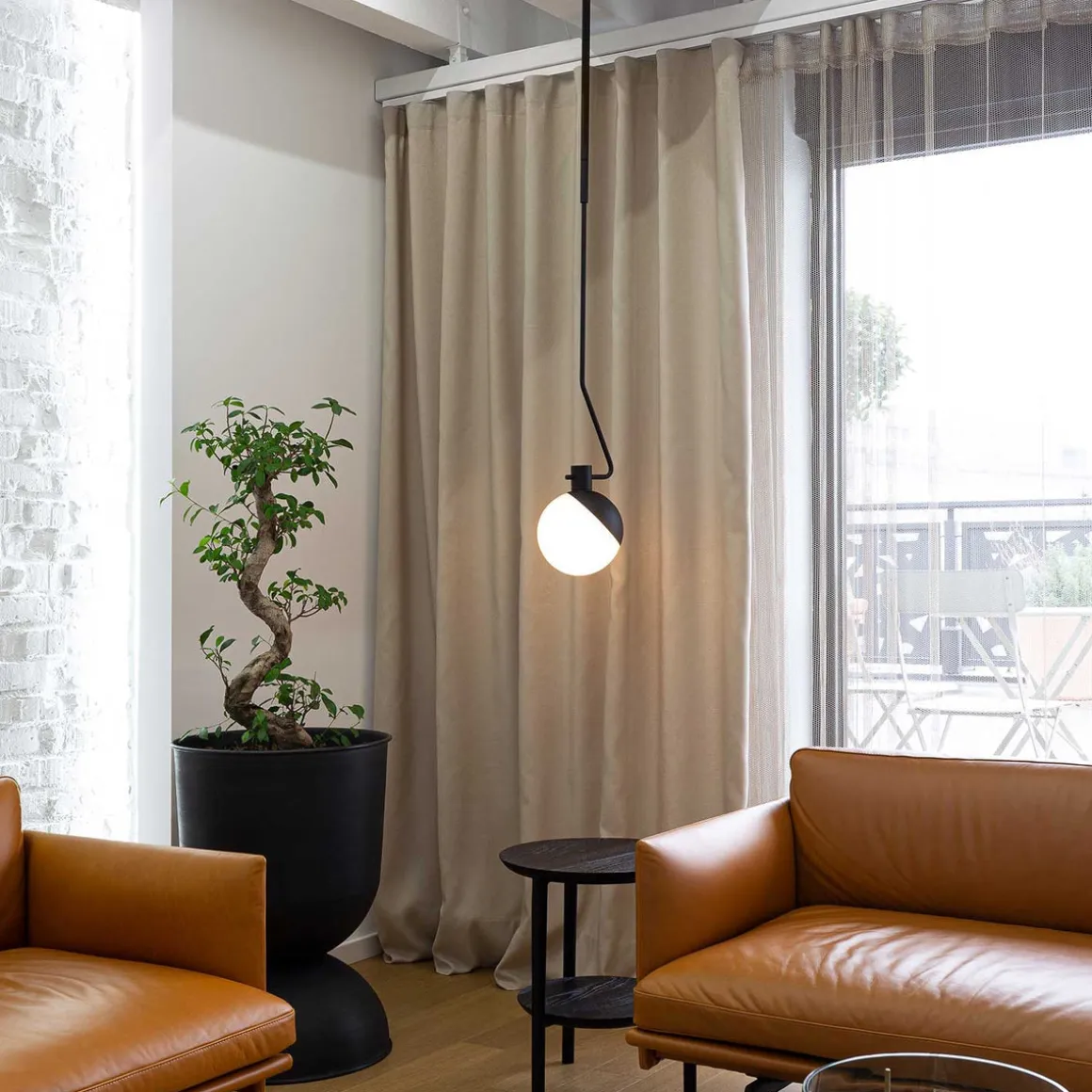 Baluna er en stilig og spesiell funksjonell taklampe som kan justeres i høyden fra 136 cm. til 203 cm, og lampehodet kan rotere 360 grader om sin egen akse. Det munnblåste sateng-opalglasset sørger for en behagelig lysfordeling, og den spesialdesignede dimmeren muliggjør maksimal kontroll av lysintensiteten. Taklampen er perfekt som leselampe ved siden av favorittstolen din, eller i det høye rommet, og selvfølgelig over det store kjøkkenbordet.