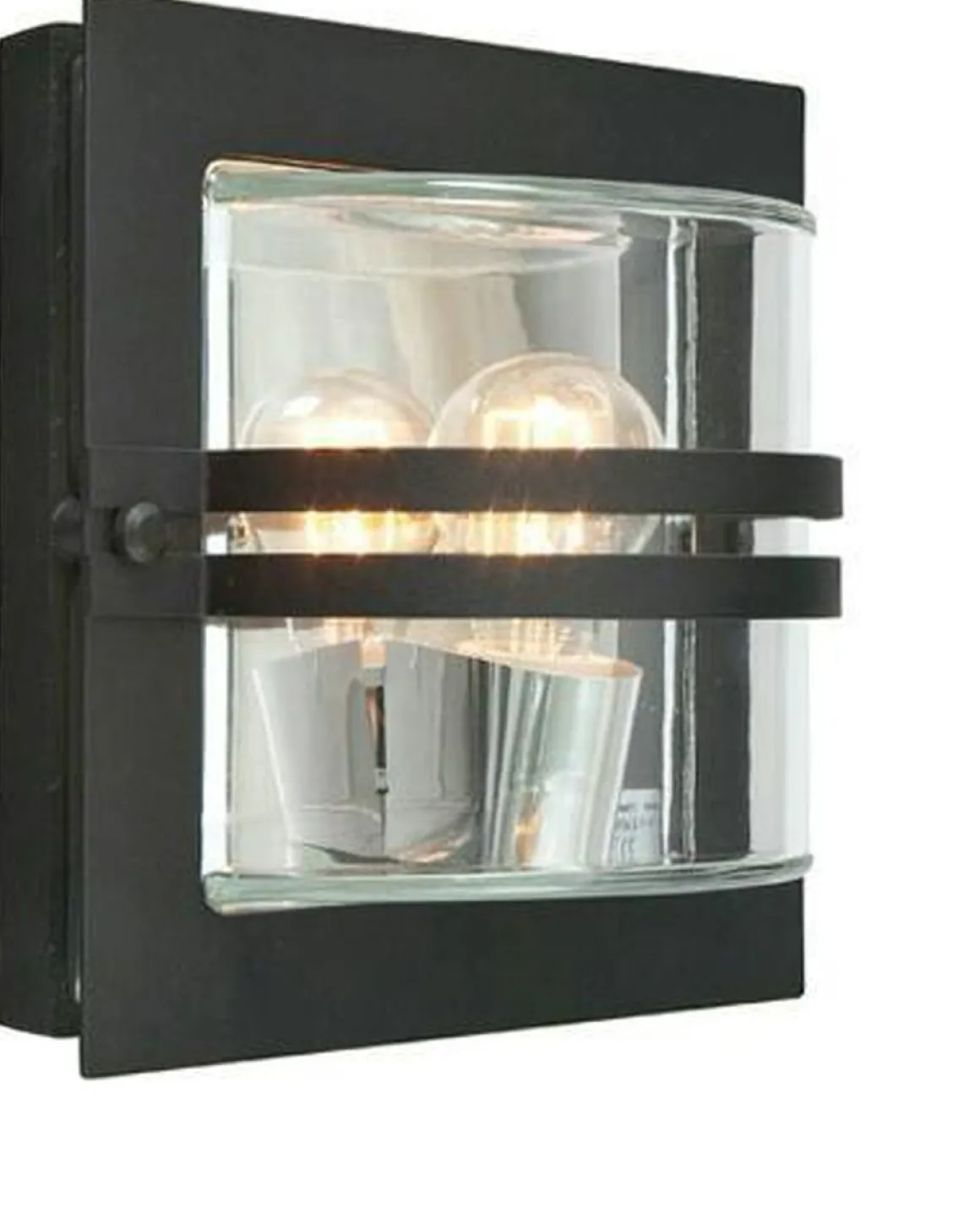 Vegglampe i moderne design for utendørsbruk. Armaturen har klart glass