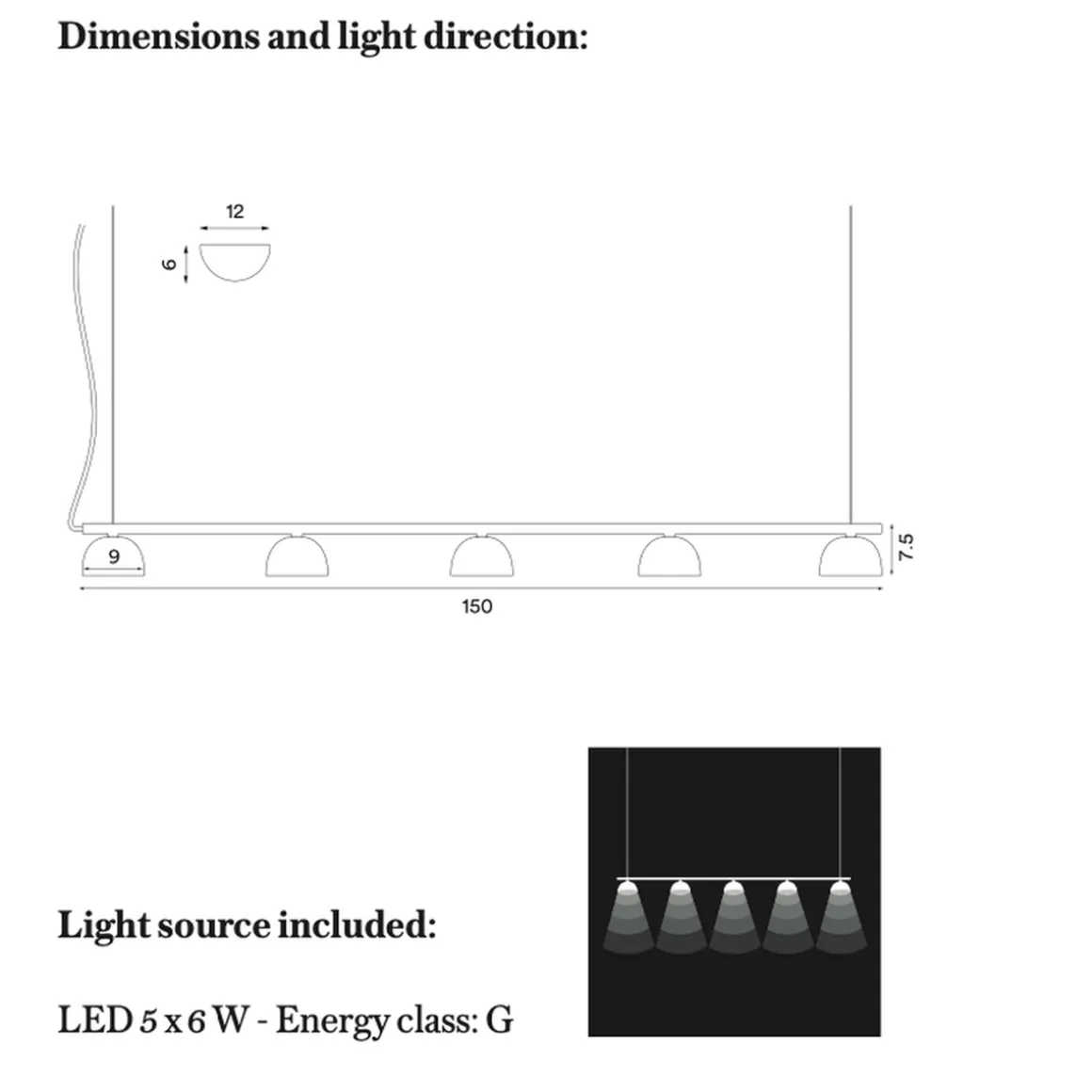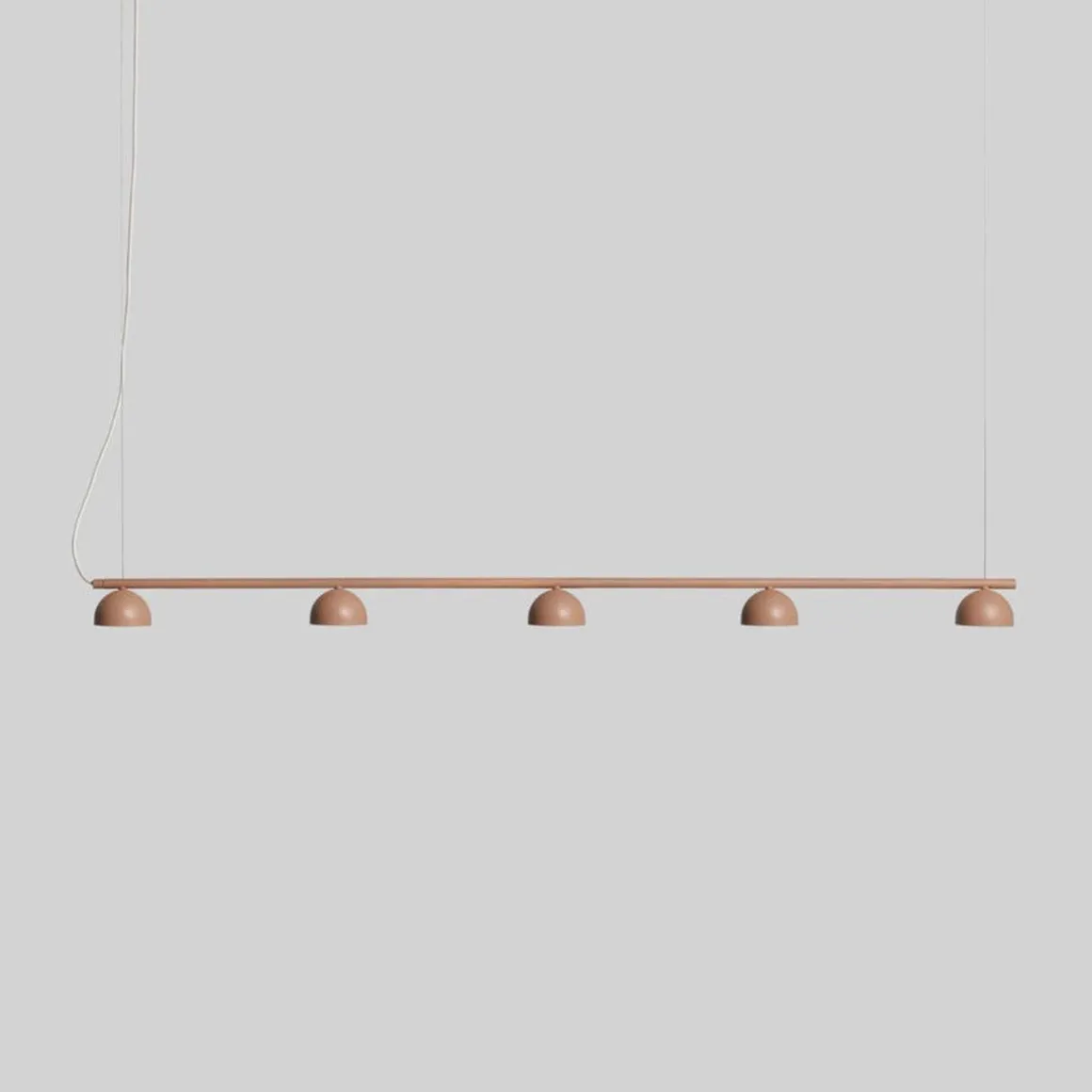 Blush Rail-pendelen er laget av pulverlakkert stålrør og tilgjengelig i utvalgte farger, og er integrert med et sett med enten tre eller fem små opale akryldiffusorer som alle er koblet sammen for enkel installasjon.