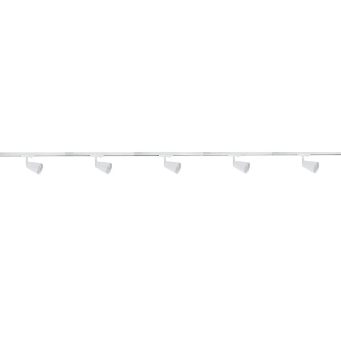 Komplett 2 meter spotskinne med 5 spotter. Lyspærer kjøpes separat med GU10 sokkel.