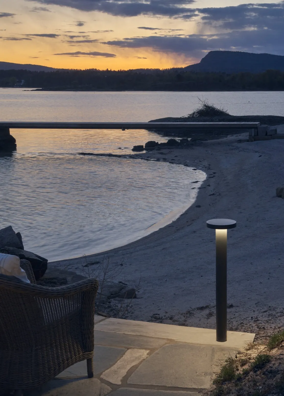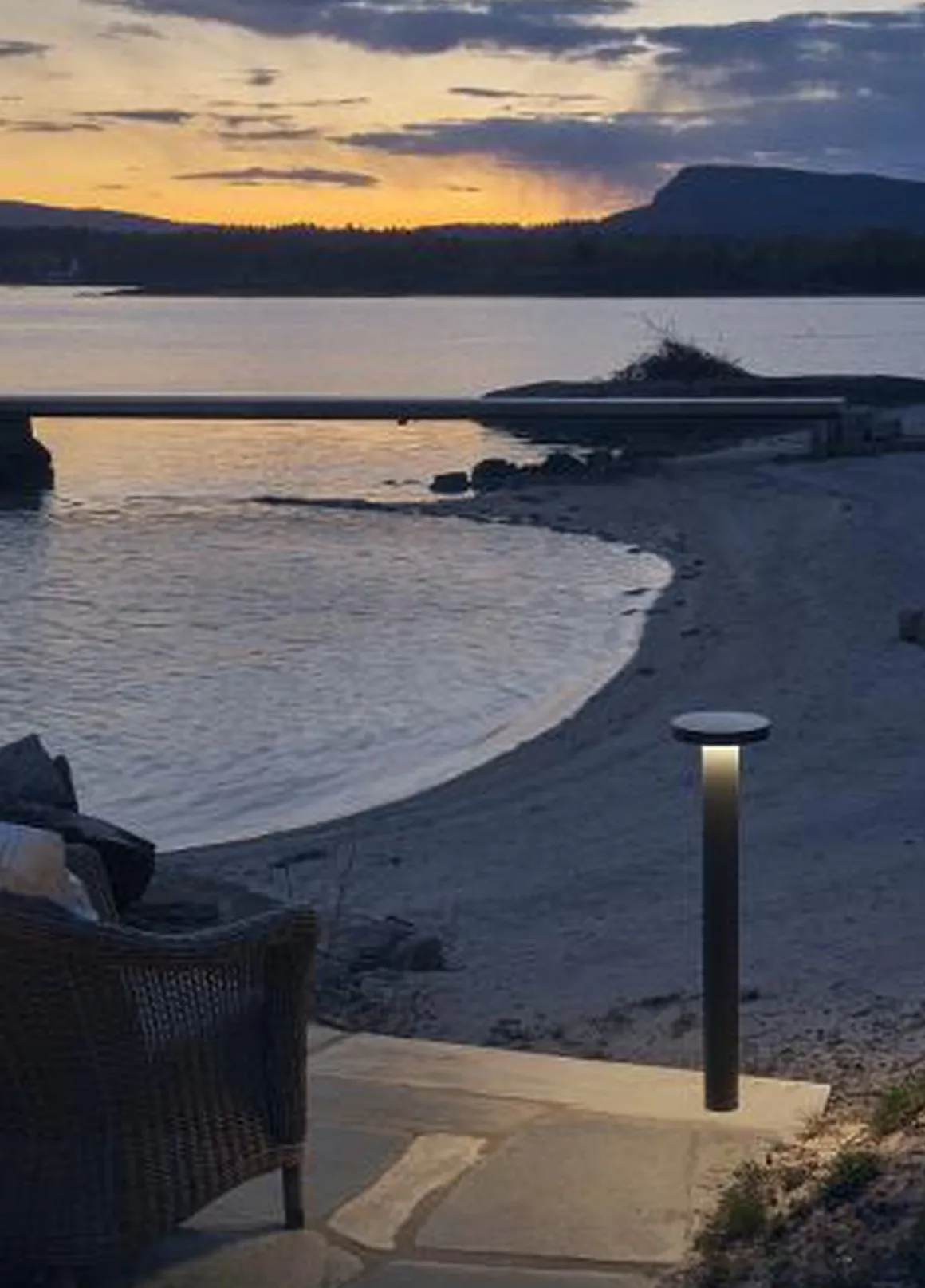 Stilren LED pullert i aluminiumstøp. Blendefri med indirekte lys. Polykarbonat glass med optisk struktur. Lampen leveres i fargene aluminum og grafitt.