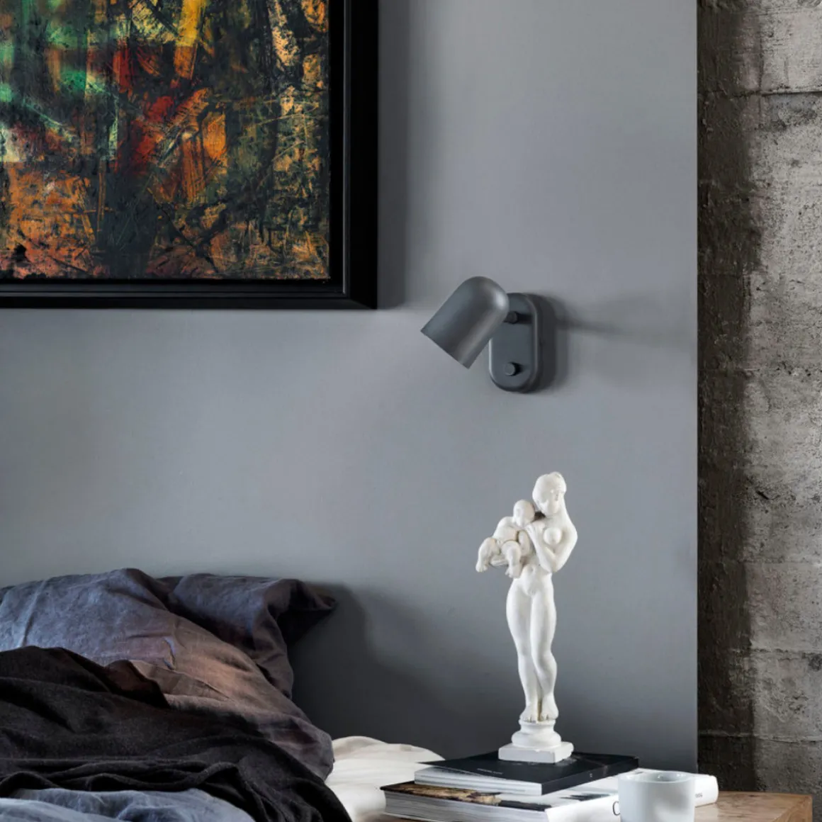 Buddy vegglampe er en en videreutvikling av Buddy Bordlampe. Den er myk i formene, funksjonell og har en dimmebryter lett tilgjengelig på selve lampen. Lampen er også bevegelig slik at du kan styre lysets retning. Kan fastmonteres men ledning følger med. Finnes i flere farger, matt off-white og matt dark grey,dark green, black og warm grey.