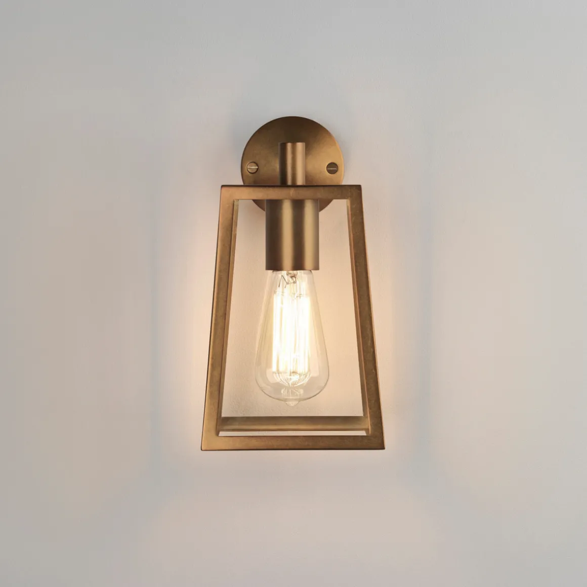 Nydelig vegglampe i antikk messing. Lampen kan dimmes dersom du benytter en dimbar lyspære og kobler lampen til en ekstern dimmer.