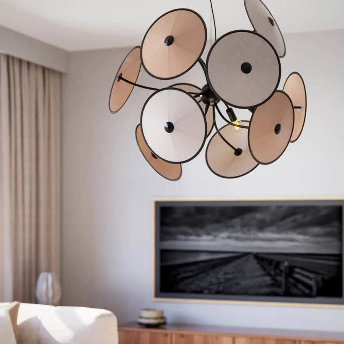 Opplev eleganse og allsidighet med vår Cappello taklampe. Med 6 off-white og 6 beige nyanser i thailandsk silke, skaper den harmonisk belysning.