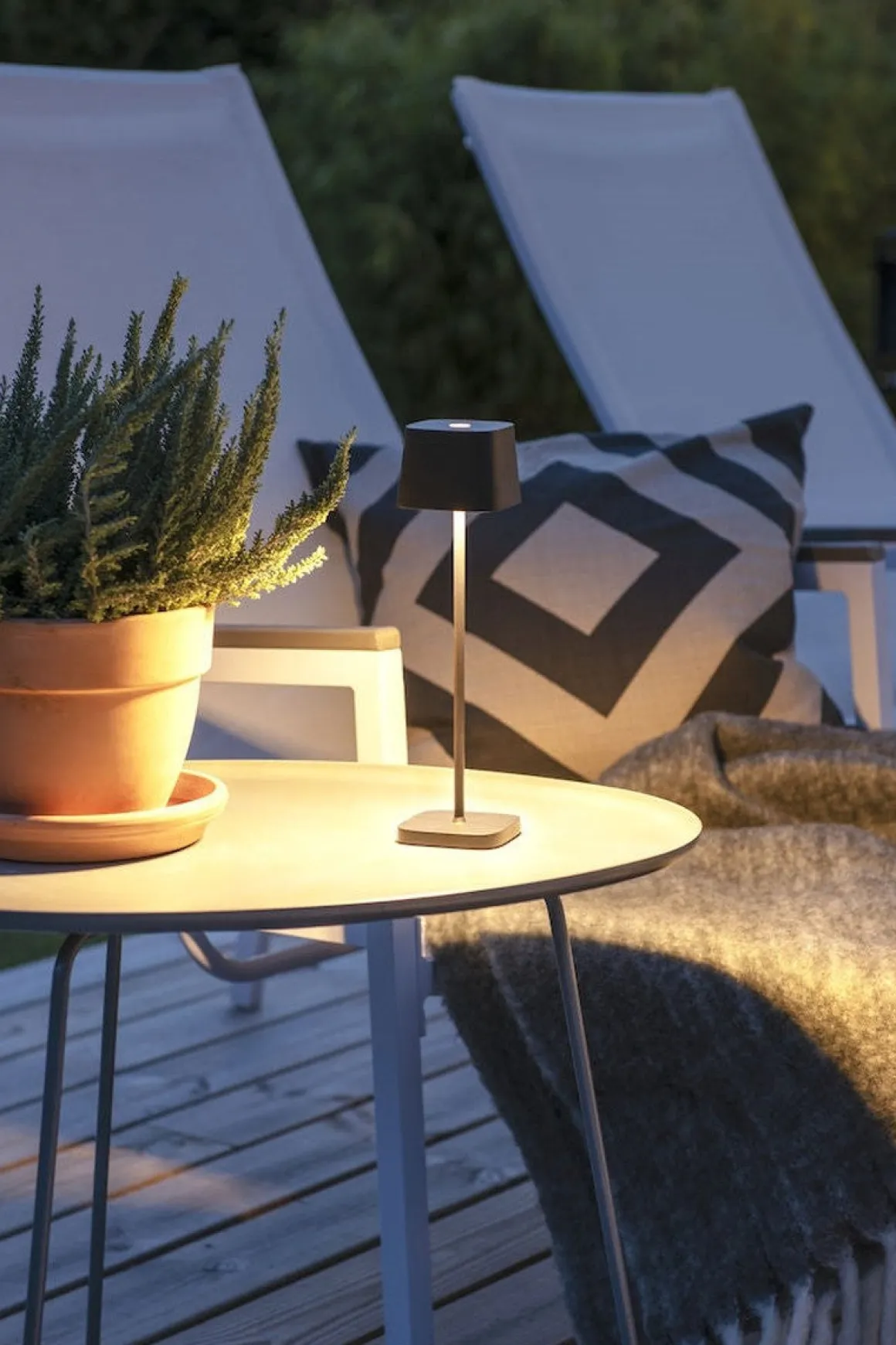 Bordlampe med skiftende fargetemperatur og trådløs ladeplate. Dimmbar LED.