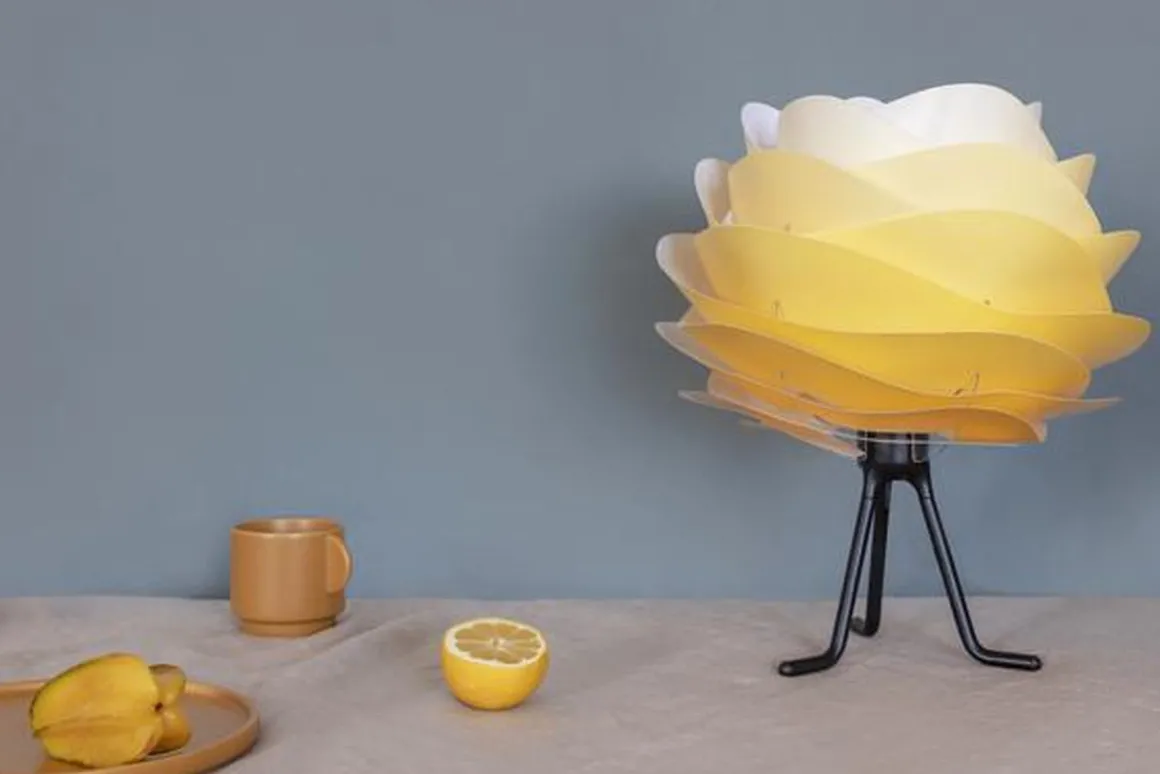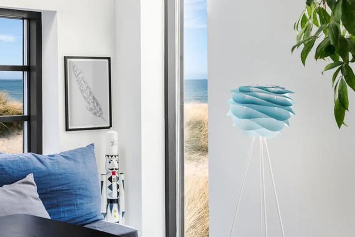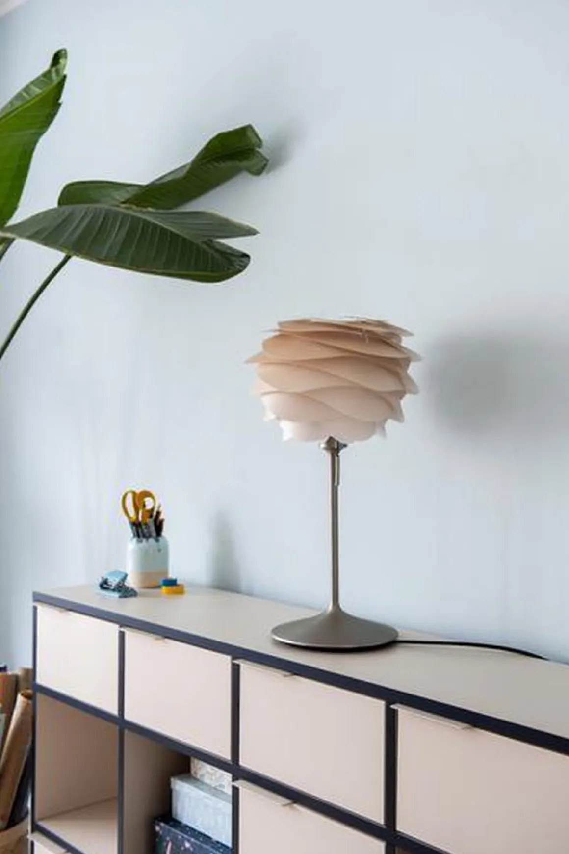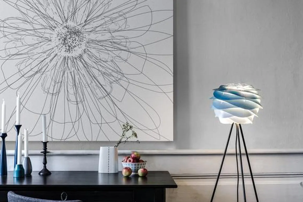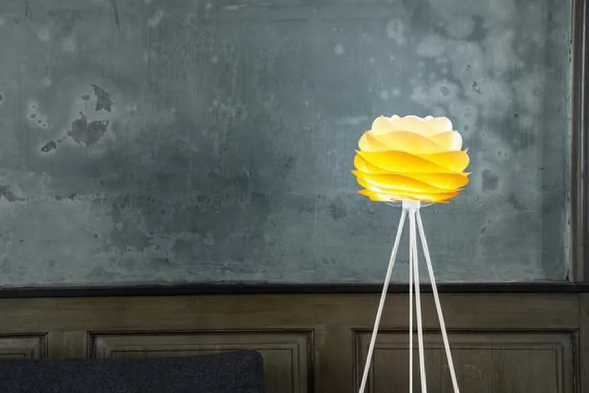 Carmina er en fleksibel lampeskjerm som kan brukes som enten gulv-, bord- eller pendellampe.