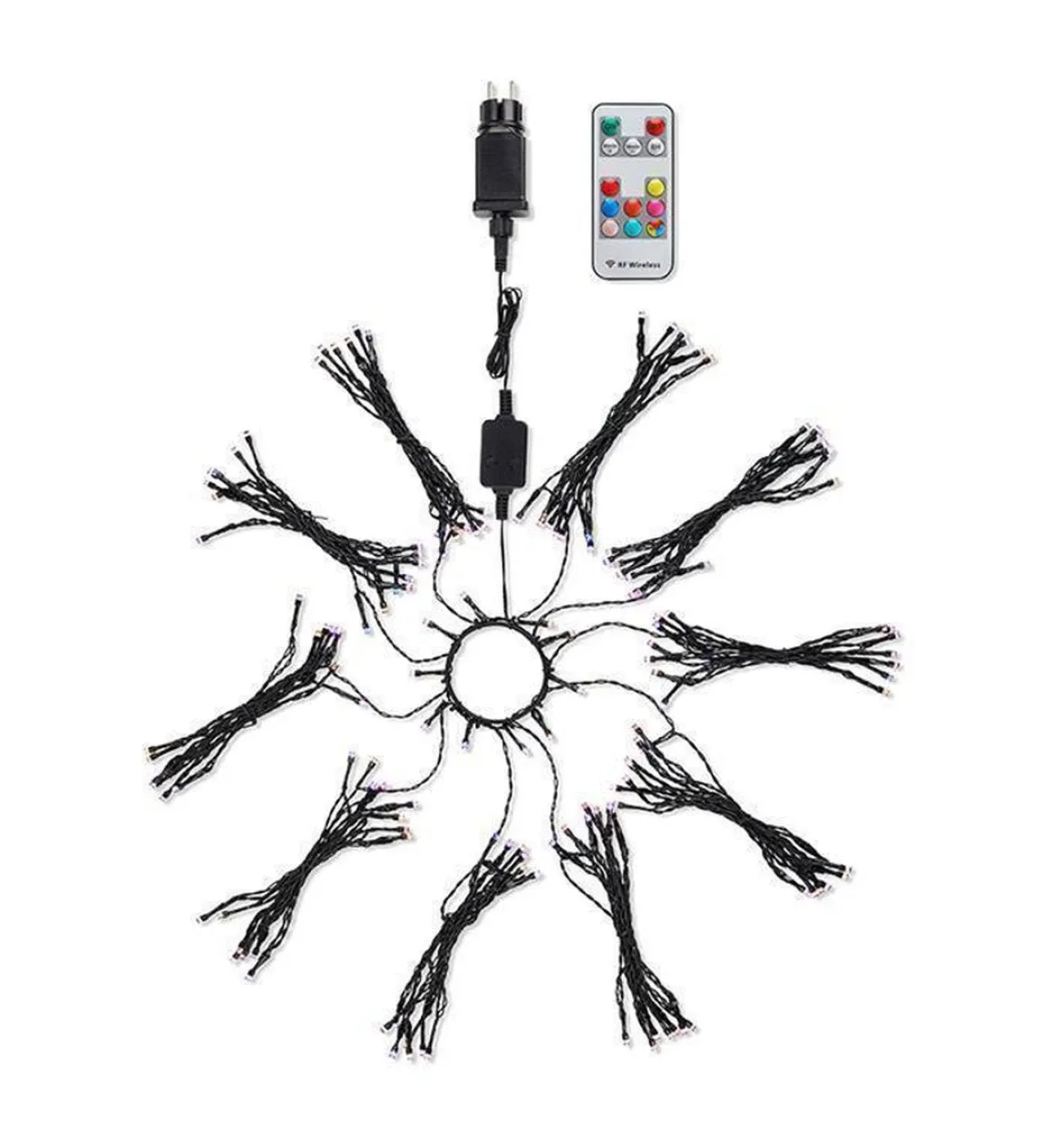 Ringslynge 2 meter med 160 lys , velg mellom forskjellige blinkende innstillinger og farger med fjernkontrollen. Kan brukes utendørs og passer perfekt til juletreet.