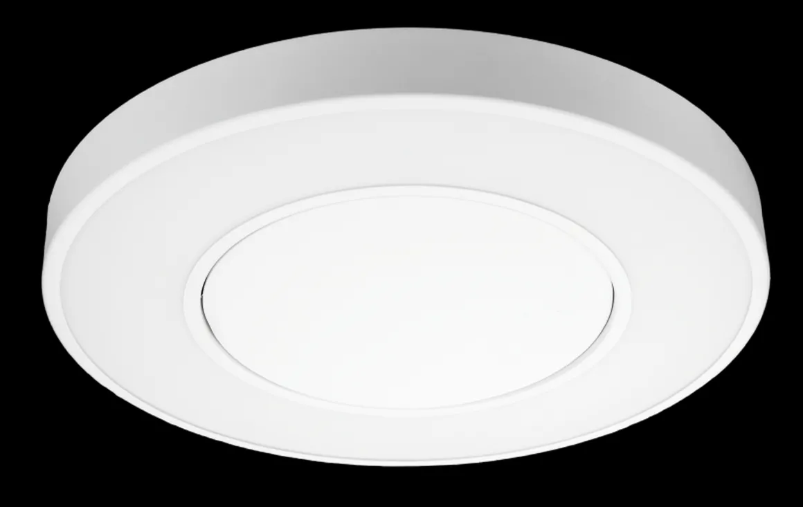 Rund, utenpåliggende armatur i minimalistisk design som gir et vakkert, ensartet lys som passer i alle rom. Armaturen er utført i pulverlakkert, matt sort eller hvitt stål. Enkel montering med hurtigkobling mellom armatur og bakplate som kan skrus direkte på alle kjente takbokser. Synlig kabling også mulig.