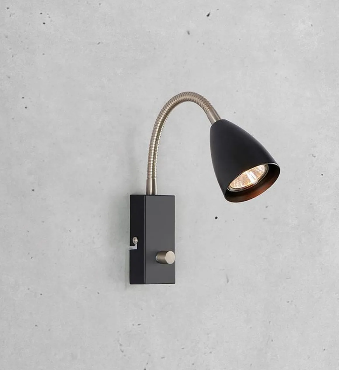 Ciro Flex-vegglampe fra Markslöjd i metall med flexarm i messingfarge. Dimmer er montert på veggplaten.
