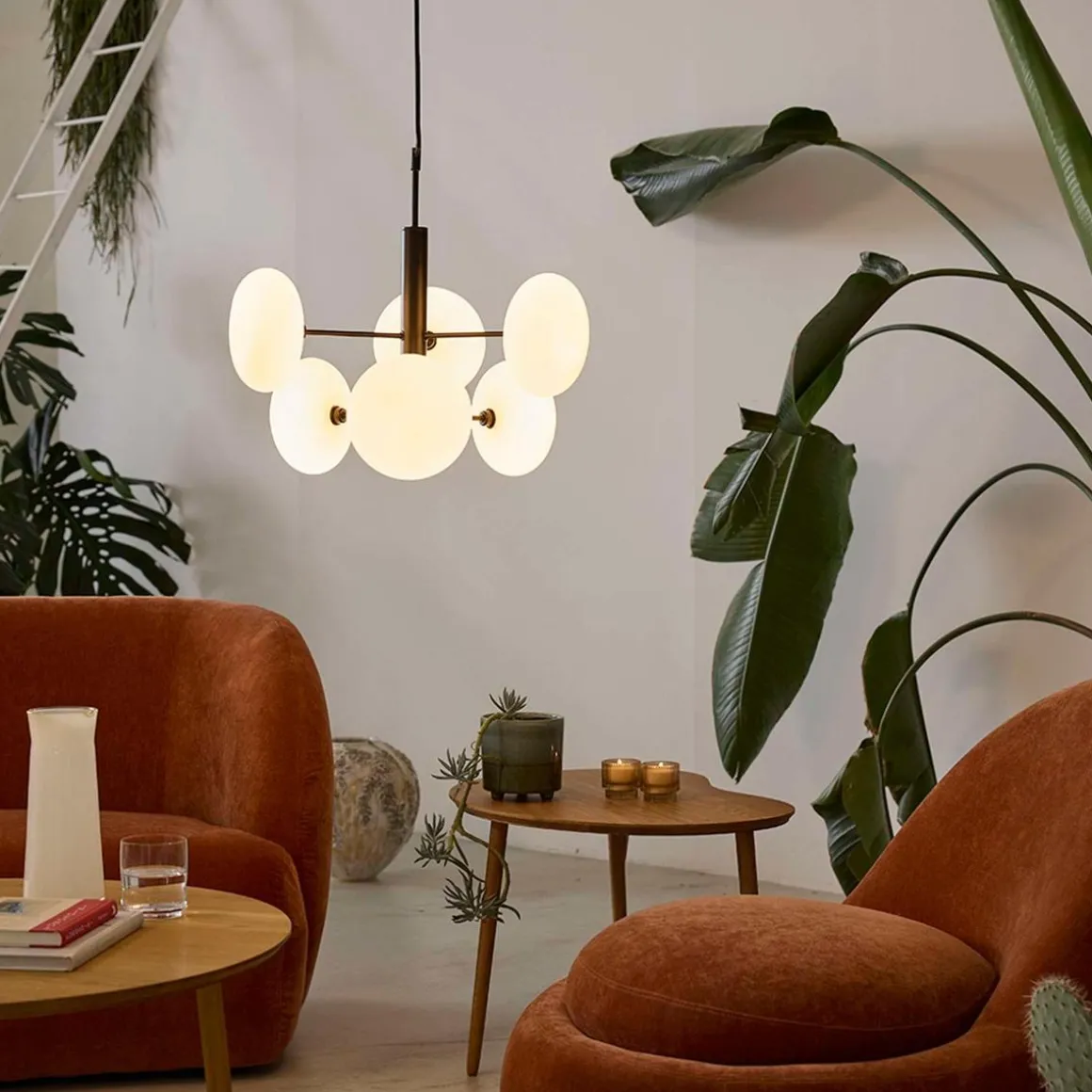 Continental-pendelen er en elegant lampe som kombinerer moderne design med klassisk enkelhet. Med en diameter på 53 cm, en høyde på 48 cm og seks vakre opalglasskjermer blir den et naturlig blikkfang i rommet. Lyset fordeles mykt og behagelig, og skaper en innbydende atmosfære i hjemmet. Enten du plasserer den over spisebordet, i stuen eller i gangen, tilfører den både funksjonalitet og stil.