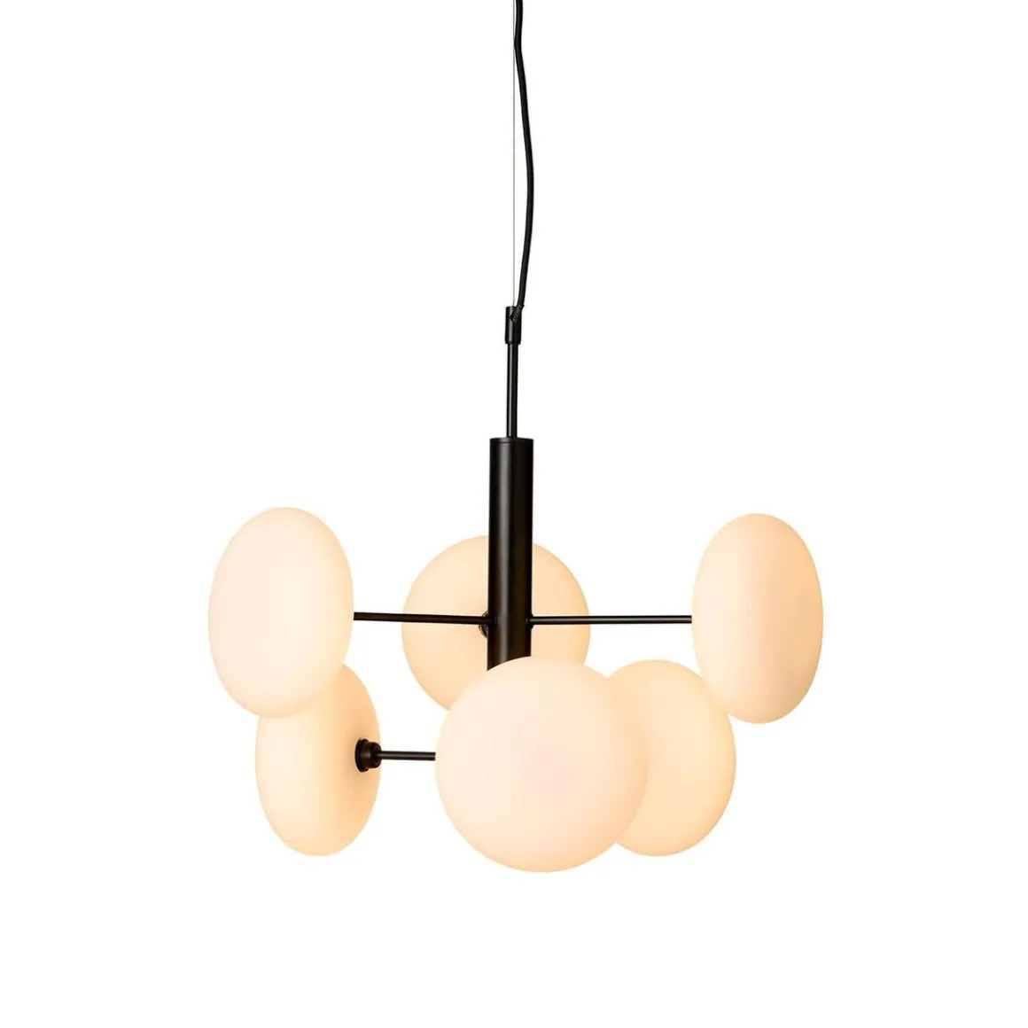 Pendelen leveres med en svart stoffledning og 3 meter ledning, som enkelt kan forkortes for å passe inn i rommet. Den bruker 6 x G9-pærer (ikke inkludert), noe som gir deg fleksibiliteten til å velge lysstyrke og mulig dimmbarhet i henhold til dine behov.