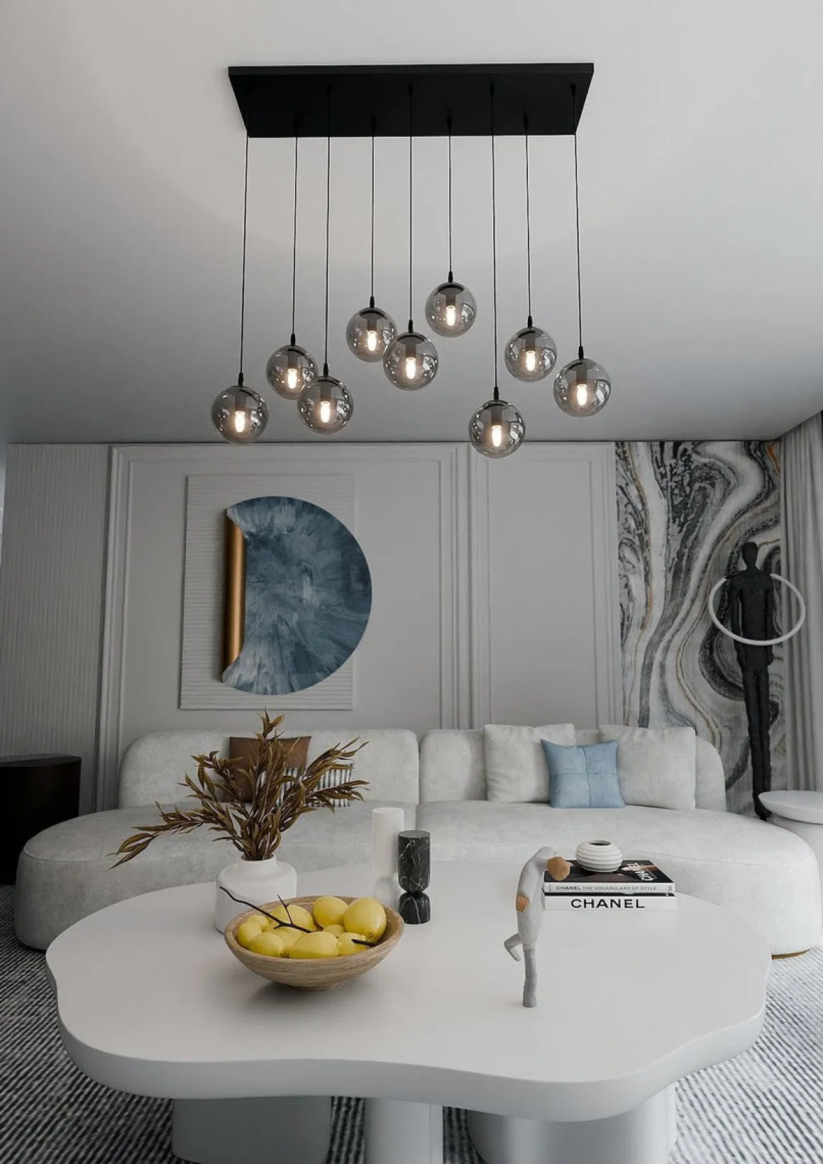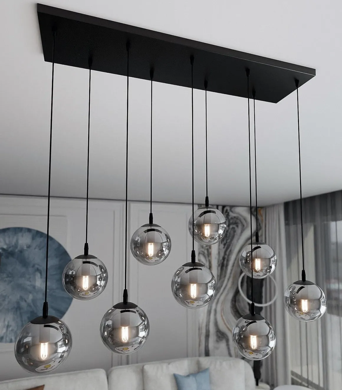 Cosmo er en nydelig pendelserie, som blant annet finnes som 1, 2, 3, 4, 6 eller 9 lys. Modellen er i fargen sort og kan velge mellom klart-, røykfarget- eller amberfarget glass.