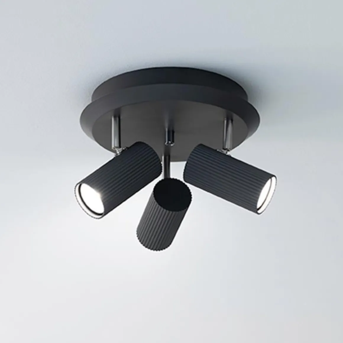 Roterbart og justerbare spotthoder i enkel grå utførelser med små detaljer.