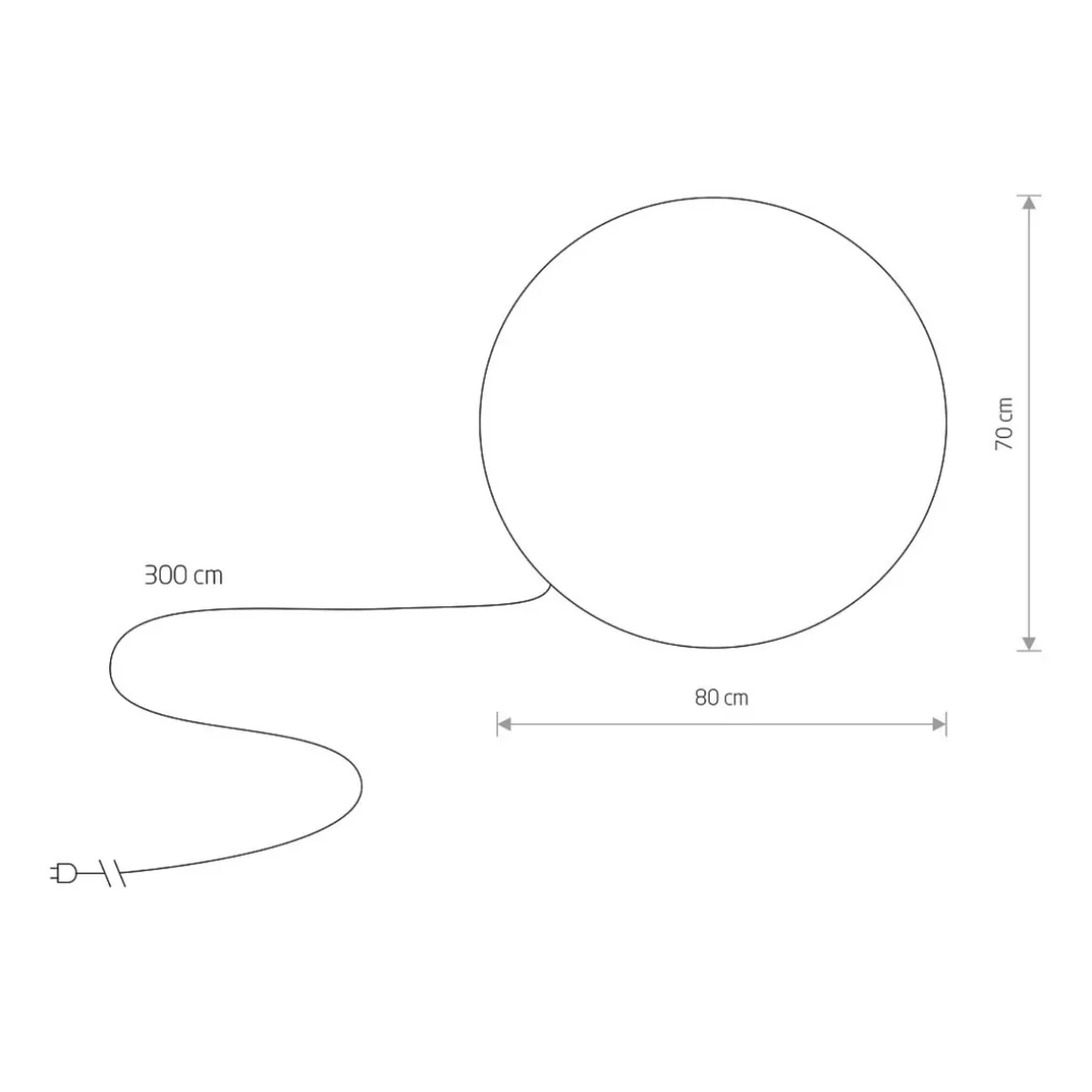Det følger også med en 300 cm lang ledning med støpsel til stikkontakt.