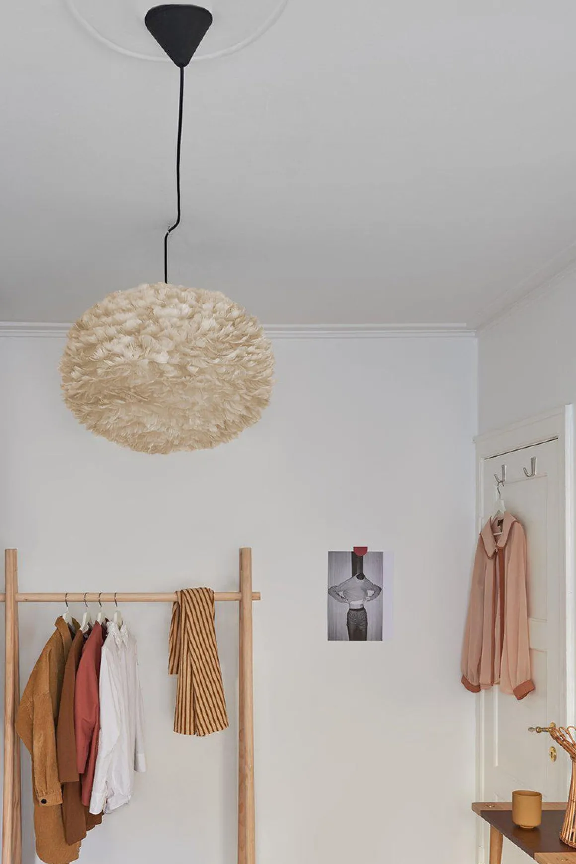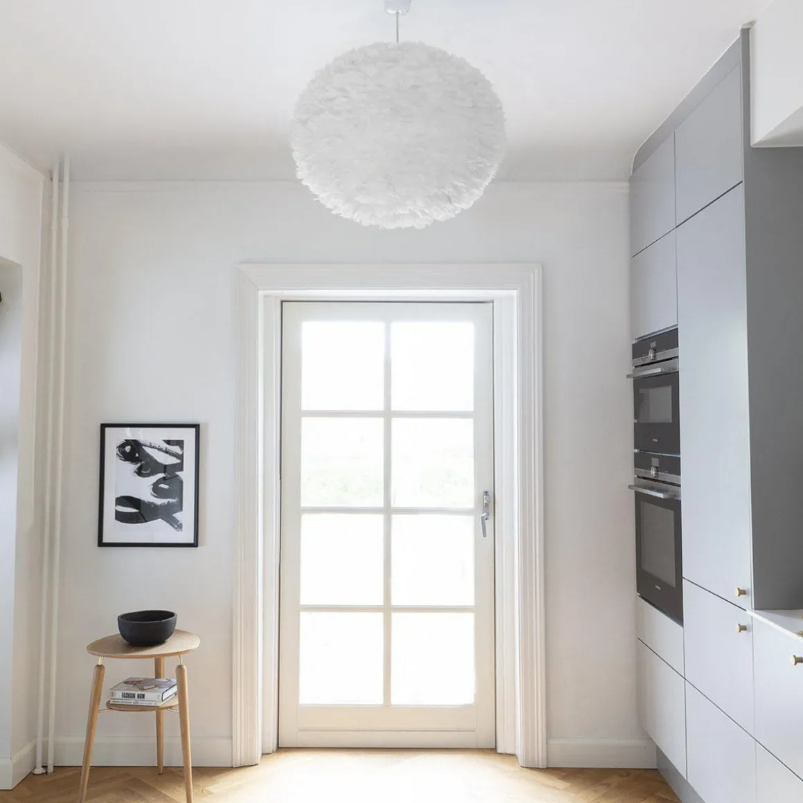 Eos large passer perfekt for kreative områder – heng de i varierende høyder i en stue, et hjørne eller i en rad over spisebordet. Det utstråler en myk og koselig glød. Rutinemessig rengjøring gjøres enkelt med en hårføner.