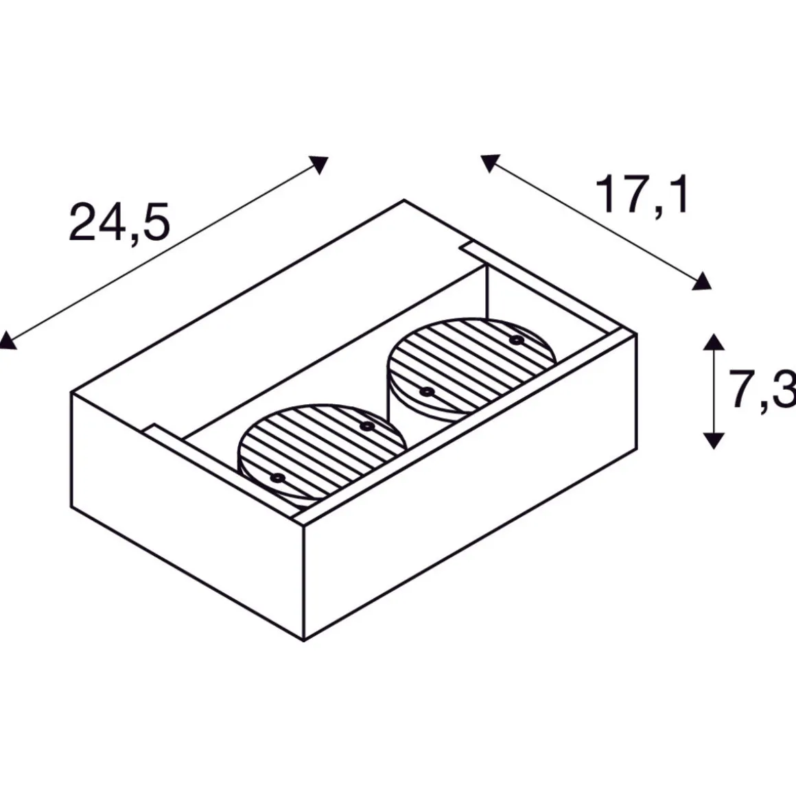 Gjennomgående vellykket armaturdesign innsatt i firkantet aluminiumsramme: ESKINA FRAME WL double ser stilig ut i ethvert utendørsområde. Du kan via CCT-bryter (3000/4000 K) regulere den 2200 / 2400 lumen sterke og doble veggmonterte armaturn. Med strålingsvinkelen på 95 grader oppstår det et bredt fordelt lys. Med beskyttelsesgraden IP 65 er den best mulig beskyttet mot inntrenging av fuktighet. Og installasjonen av den designpremierte armaturn utføres både raskt og enkelt.