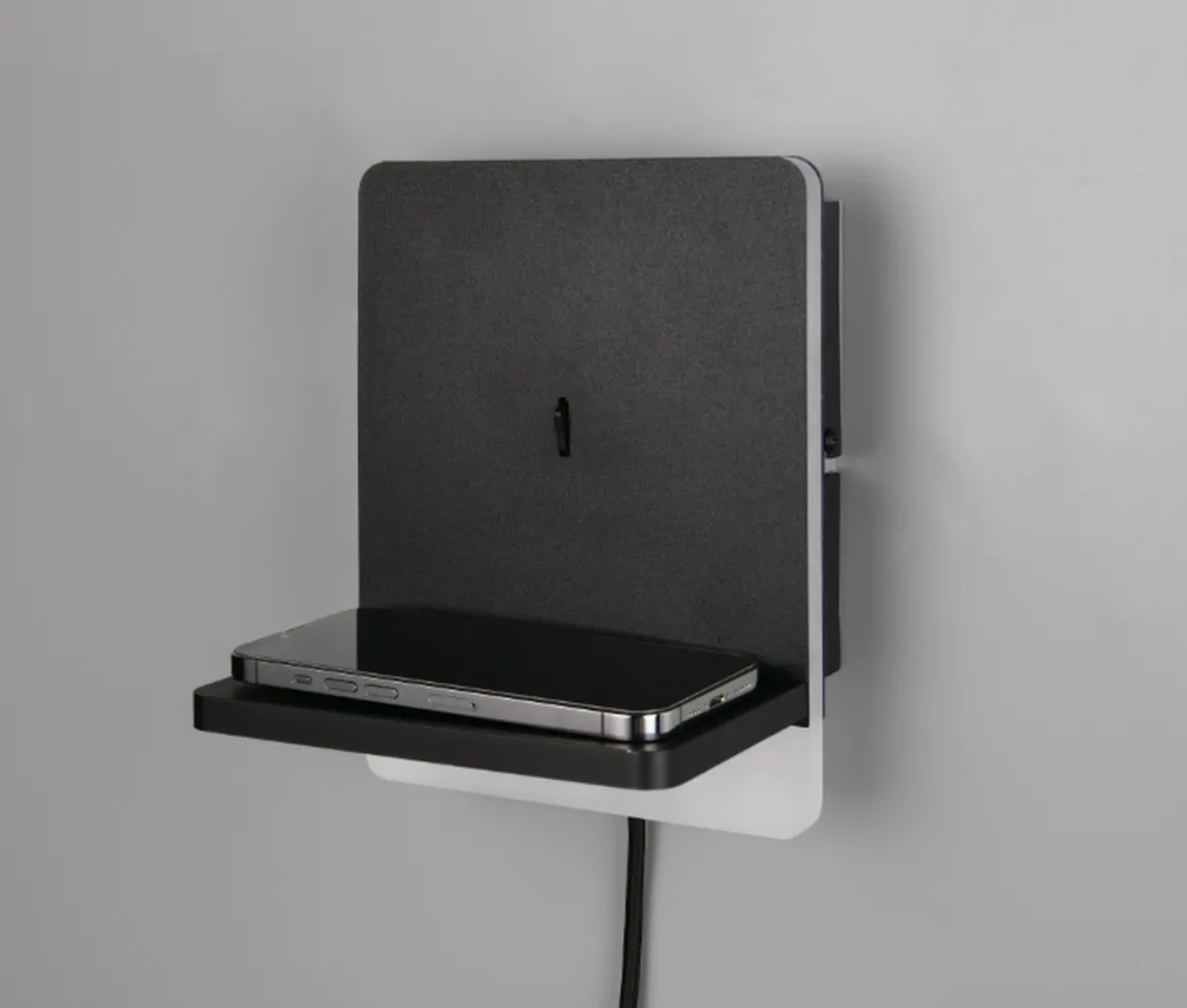 FAIRFIELD vegglampe – for en koselig stil rundt sengen! Dens enkle design og indirekte lys bidrar til avslapning på soverommet og gir koselig lysstyrke, perfekt for avslappende timer med lesing om kvelden. Med sin integrerte induktive ladestasjon muliggjør lyset enkel lading av kompatible smarttelefoner. Alternativt tilbyr den en USB- og USB-C-tilkobling med lademulighet. Takket være FLEXconnect-funksjonen er vegglampen ekstremt allsidig – den kan betjenes både via en bryter og uten kabel via den faste tilkoblingen. I dette tilfellet skjer driften via en vanlig veggbryter. Den integrerte SWITCH-dimmeren gjør det mulig å justere FAIRFIELD til tre lysstyrkenivåer (100 %, 50 % og 25 %) og tilpasse den til dine behov. Den enkle designen i matt sort sørger for at lyset lett smelter inn i ethvert interiør. Armaturen har også moderne LED-teknologi, som kjennetegnes av høy lyskvalitet og energieffektivitet