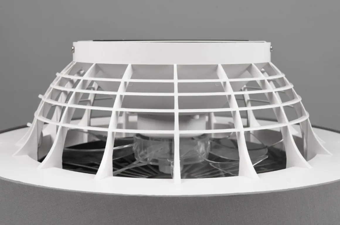 Farsund er en stilren vifte med lys og fjernkontroll. Det er mulig å skifte fargetemperaturen i lyset mellom 3000 kelvin til 6000 kelvin, da bestemmer du selv om du ønsker varhvit eller kjøligere fargetemperatur