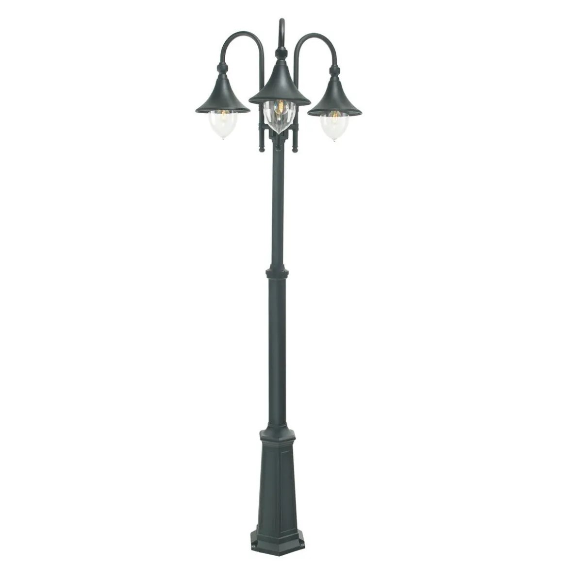 Stolpelampe i klassisk design. Høyden på stolpen kan enkelt justeres. Glasset er av slagfast klar (sotet) polykarbonat. Hvit kuppel kan bestilles.