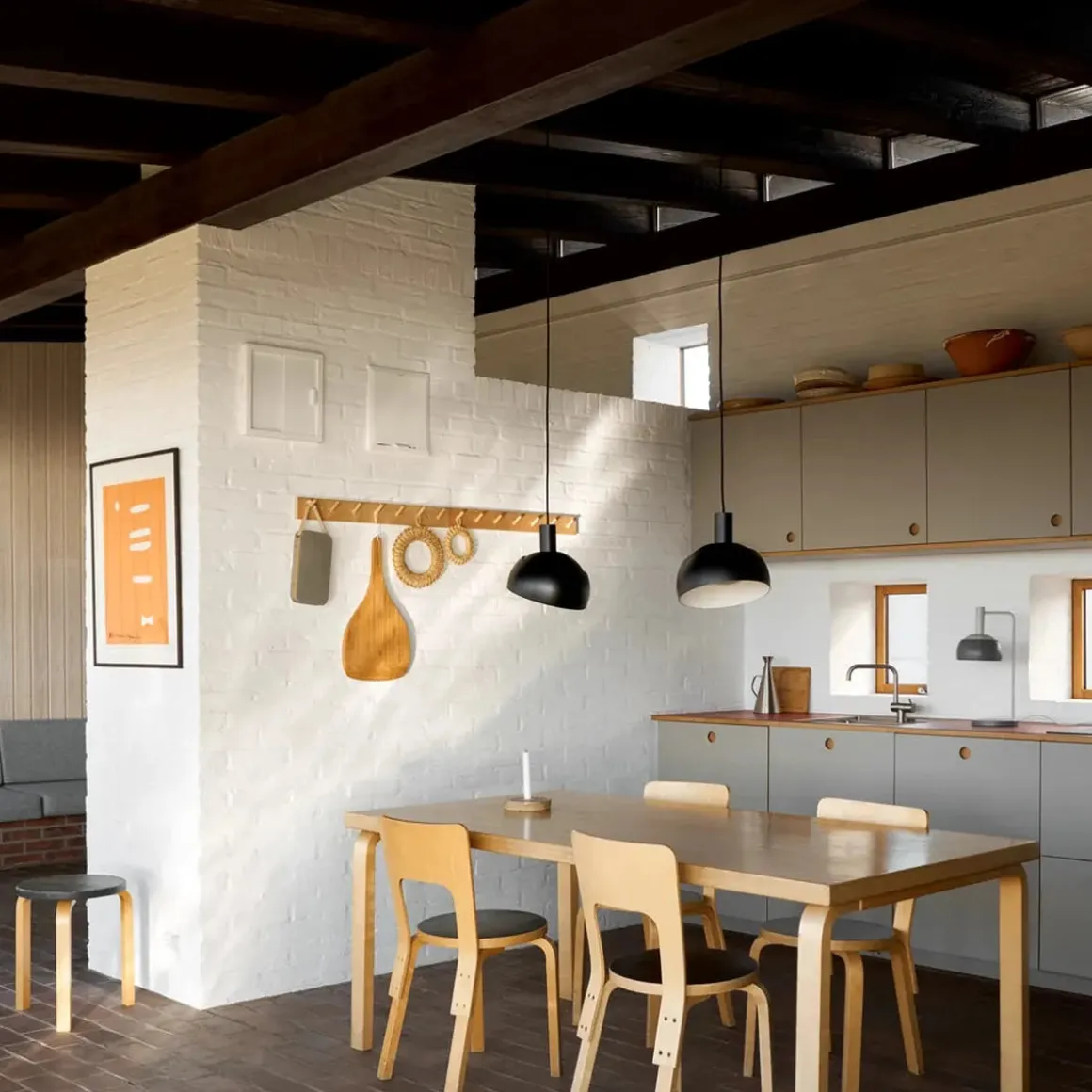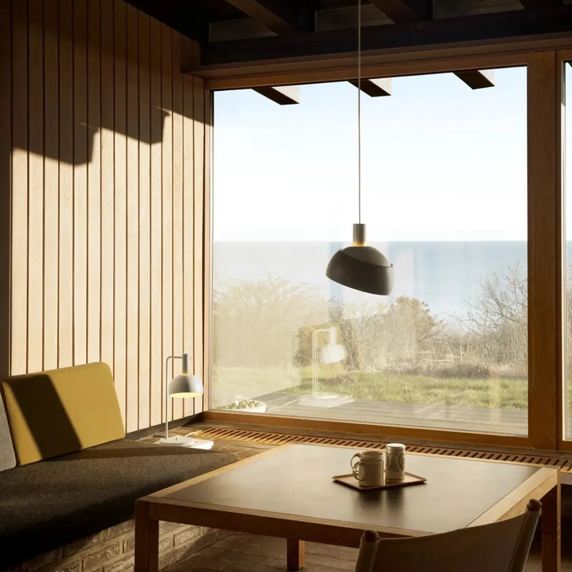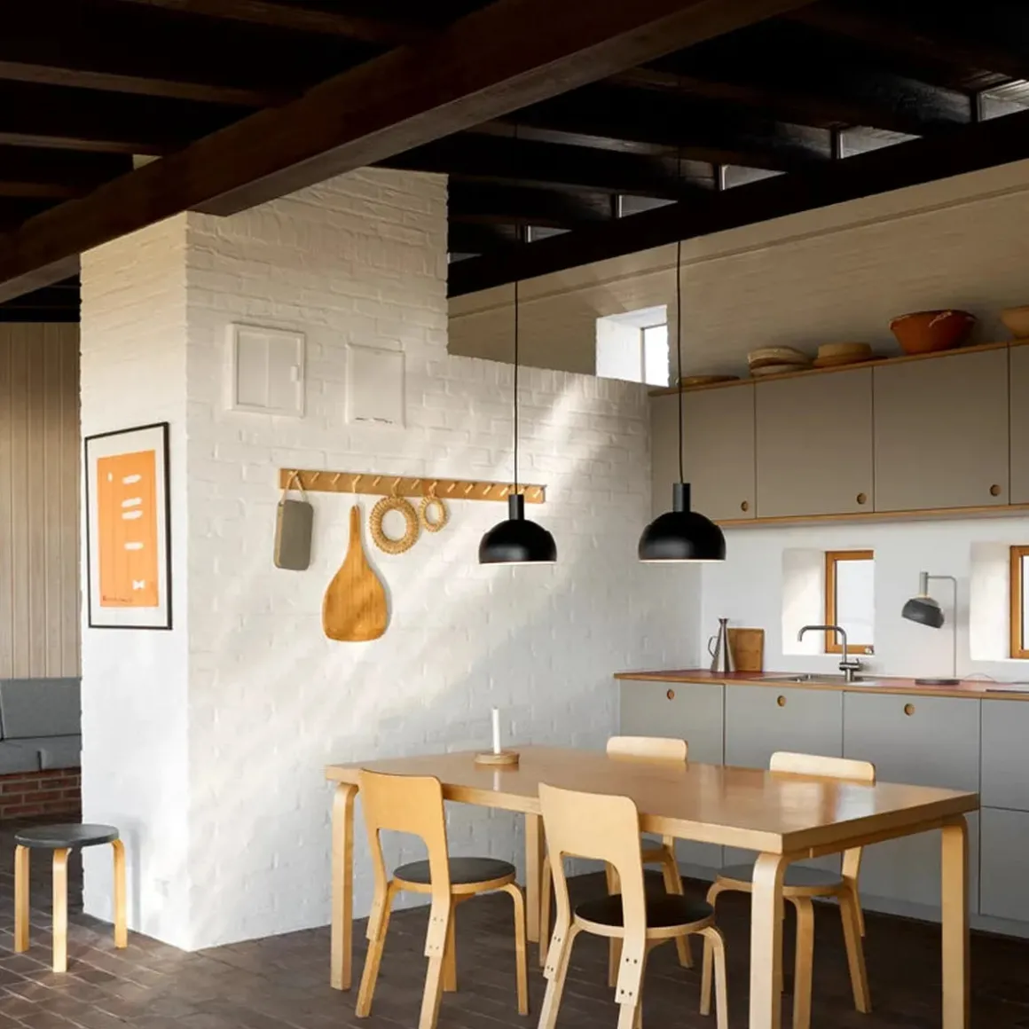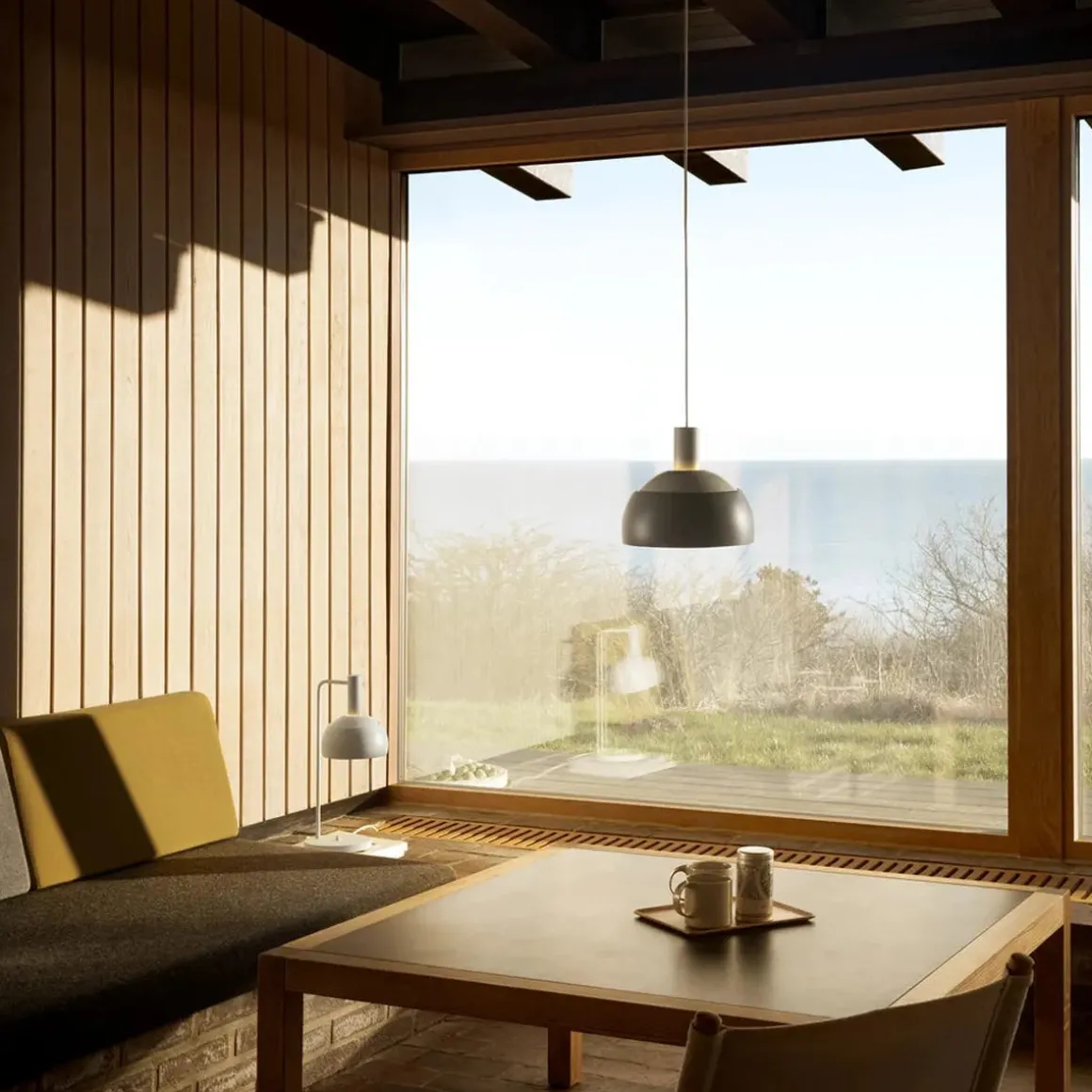 Taklampen og bordlampen ble opprinnelig designet i 1963 og deretter gjeninnført som FJ Elements i 2025, inkludert den originale tofargede grå varianten.