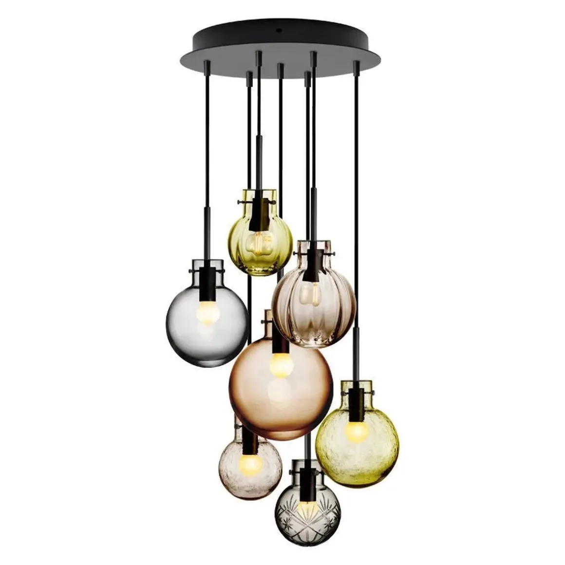 - Sort oppheng til 7 krystallkuler med sort, tekstiltrukket kabel på 3 meter