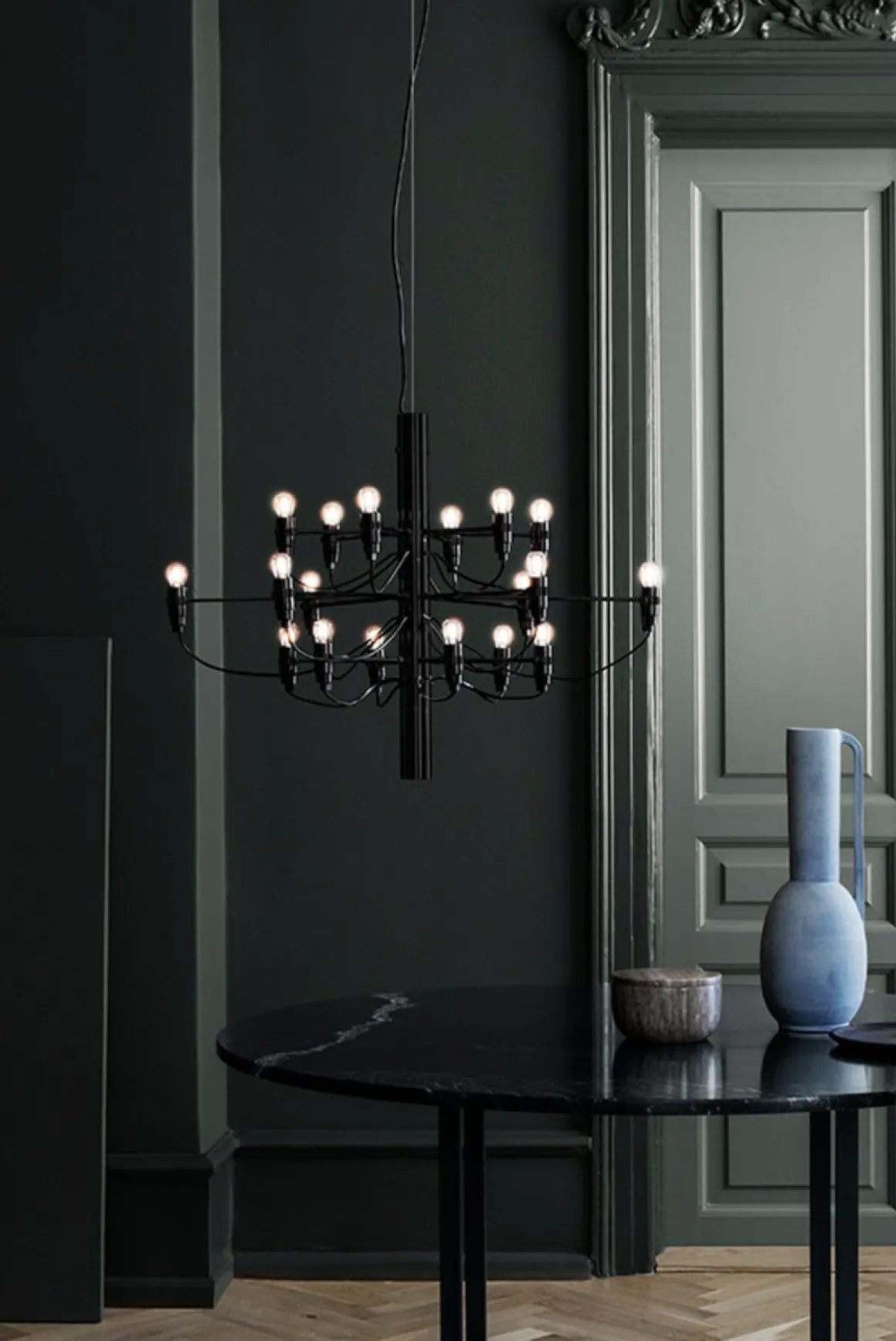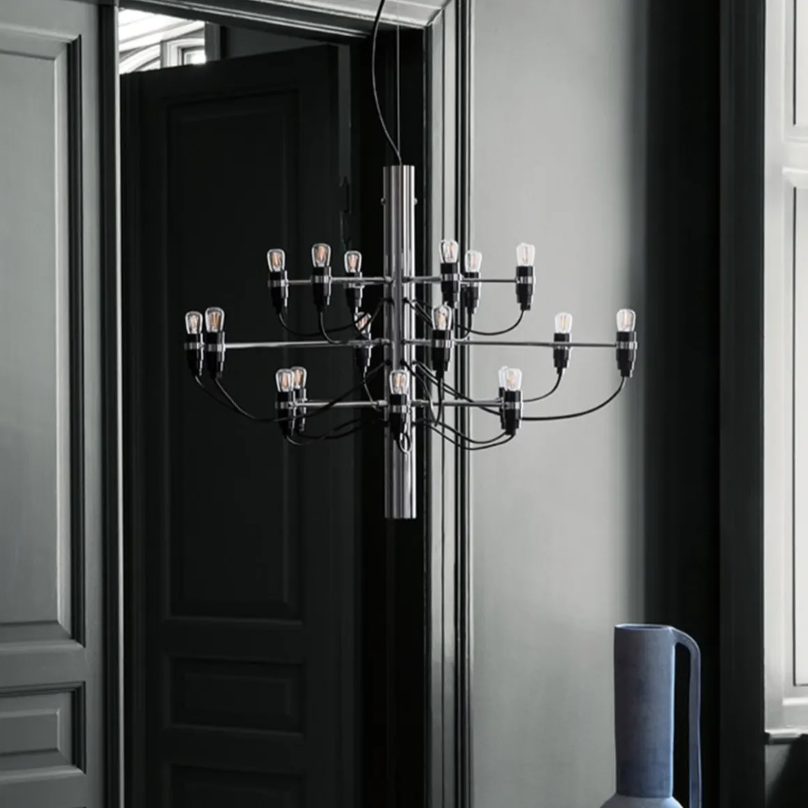 Lysekronen 2097 fra FLOS er en tidløs og klassisk lampe som hever ethvert rom. Den er tilgjengelig i sølv, messing, hvit og matt sort og i fire størrelser. Lysekronen 2097 ble designet av Gino Sarfatti i 1958 og har blitt ett lampeikon. Dette er en tidløs designklassiker og lysekronen gir mye lys til rommet. Flott å bruke over spisebord, over salongbordet, på soverom og i trappeoppgang.