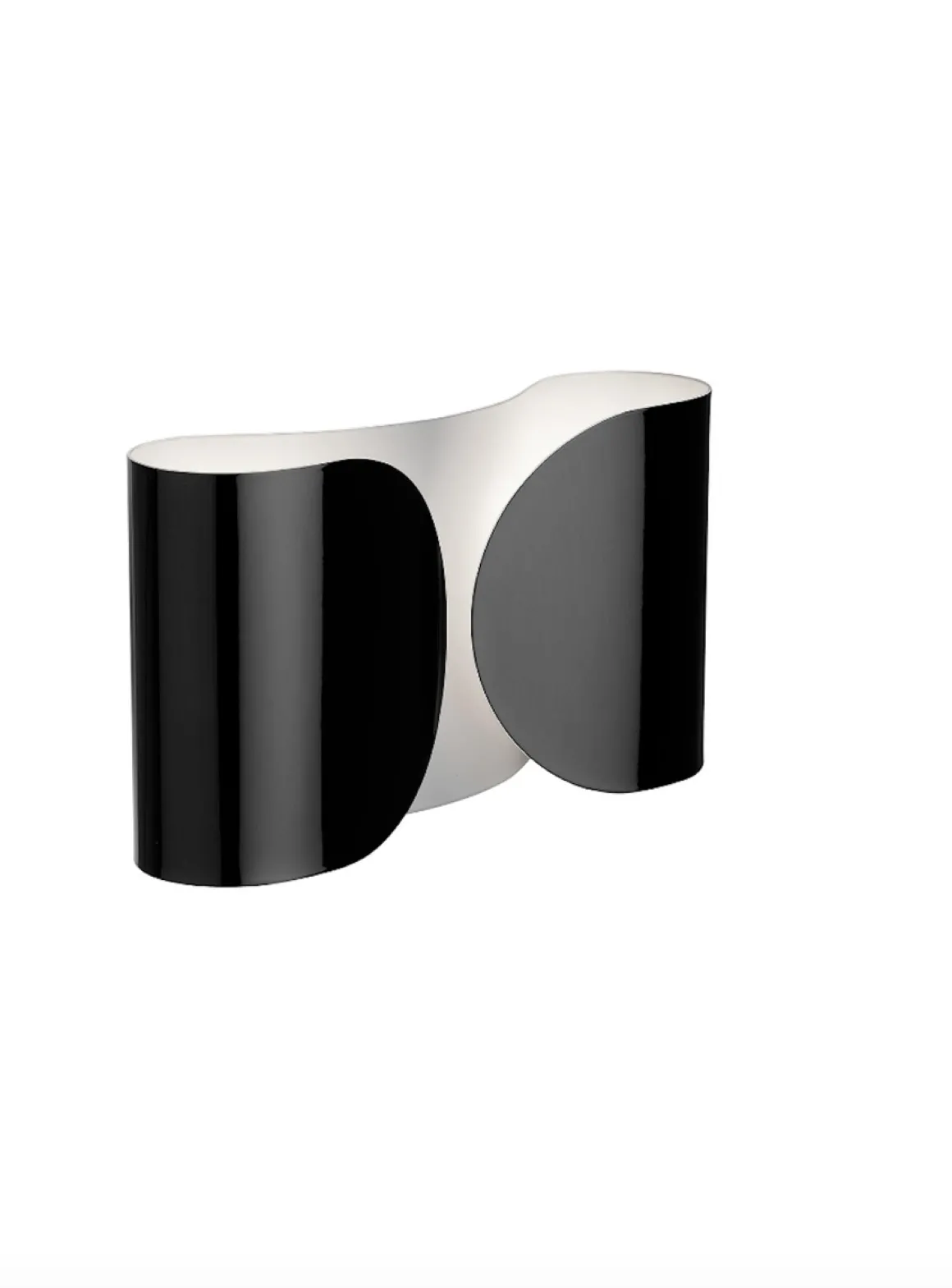 Foglio vegglampe i hvit fra Flos. Designet av Tobia Scarpa i 1966. Denne stilrene lampen er like enkel i sitt formspråk som den er genial. Et stykke foldet metall skjuler to lyskilder slik at man får et mykt lys som flommer opp og ned fra lampen. Lampen ser ut som en skulptur i seg selv, også når den ikke er tent.