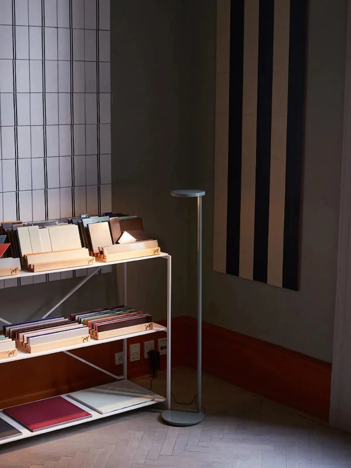 Oblique kan takket være sin innovative patenterte linse, tilby asymmetrisk lysfordeling og utmerket visuell komfort. Formen, høyden og dimensjonene samsvarer med funksjonaliteten til produktet, som gir utmerket lese belysning samtidig som lyskilden holdes usynlig for brukeren. Dette er den perfekte gulvlampen ved siden av lese stolen.