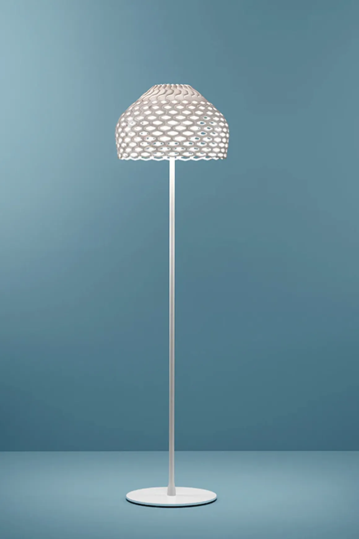Tatou F ble designet av Patricia Urquiola i 2012, og består av en serie med gulv- pendel og bordlampe. Denne lampen gir hele 205 w med lys, men lyskilden sitter skjult inni en kuppel som mykner lyset slik at man ikke blir blendet selv når lampen står på full styrke. Den perforerte skjermen slipper gjennom lyset slik at en kan skimte kuppelen inni. Det følger med en fotbryter med dimmefunksjon slik at en kan dimme lyset etter behov. Her får man mye generelt lys, men også stemningslys når lampen er dimmet ned.