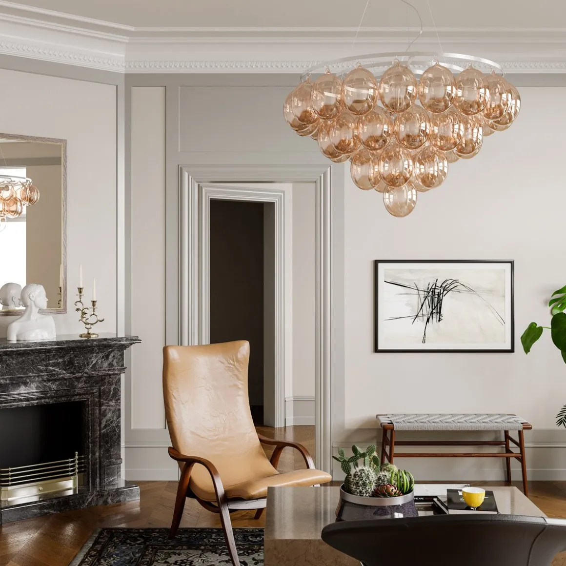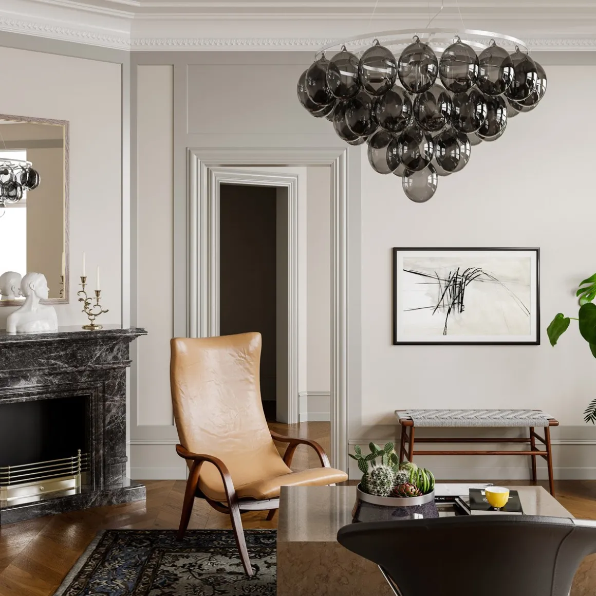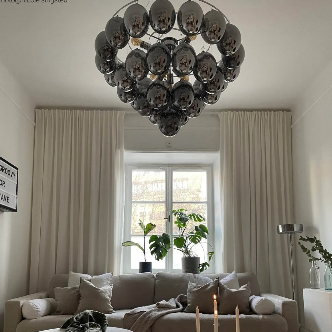 Gross Gigant er en eksklusiv takkrone med lekre glasskuler i røykfarge som gir et lunt lys. Glasskulene har en diameter på 15 cm og en lengde på 18 cm.