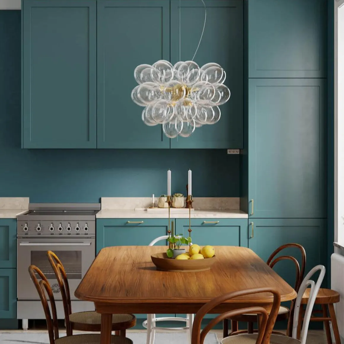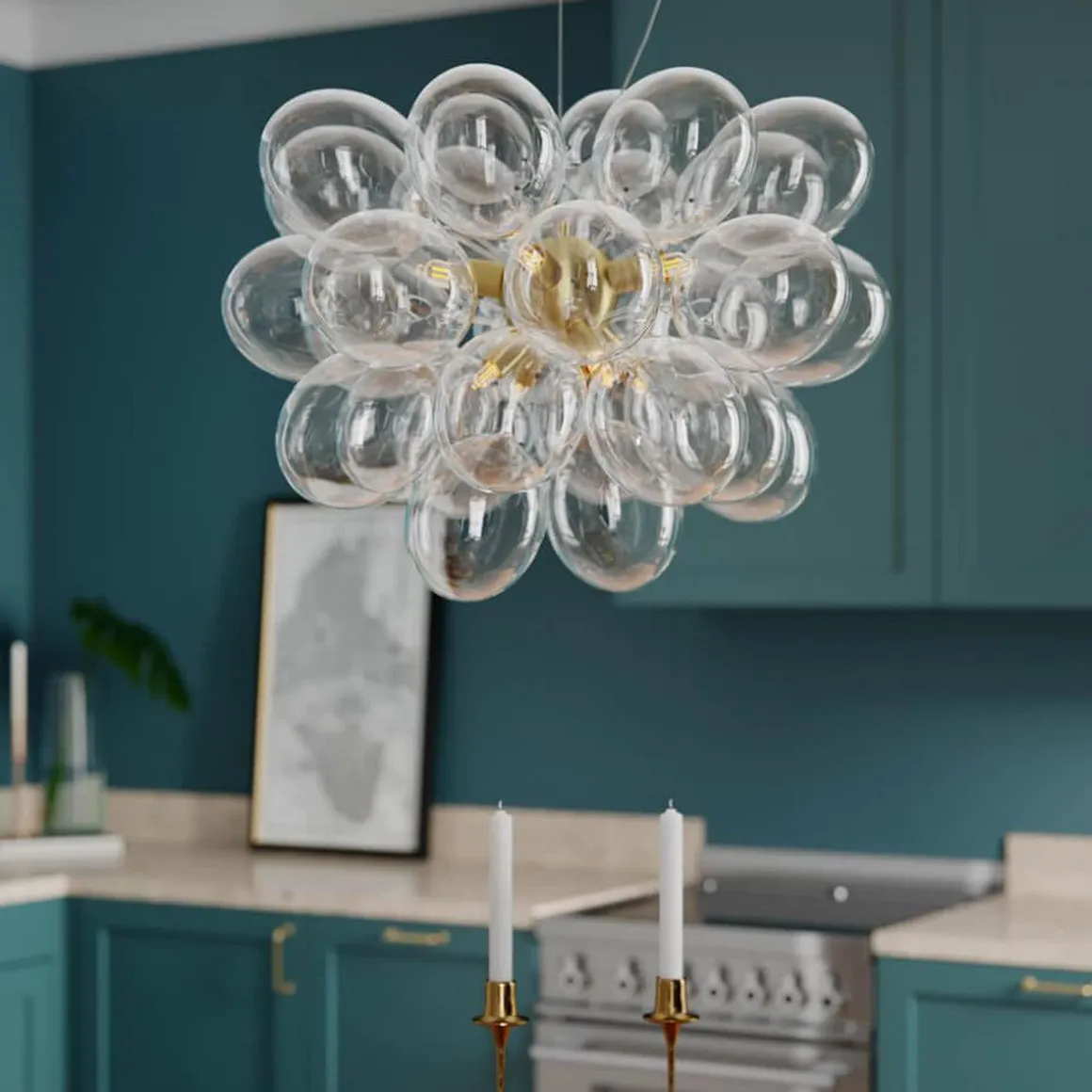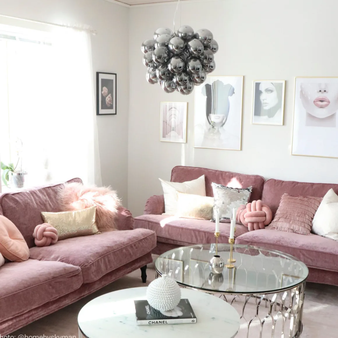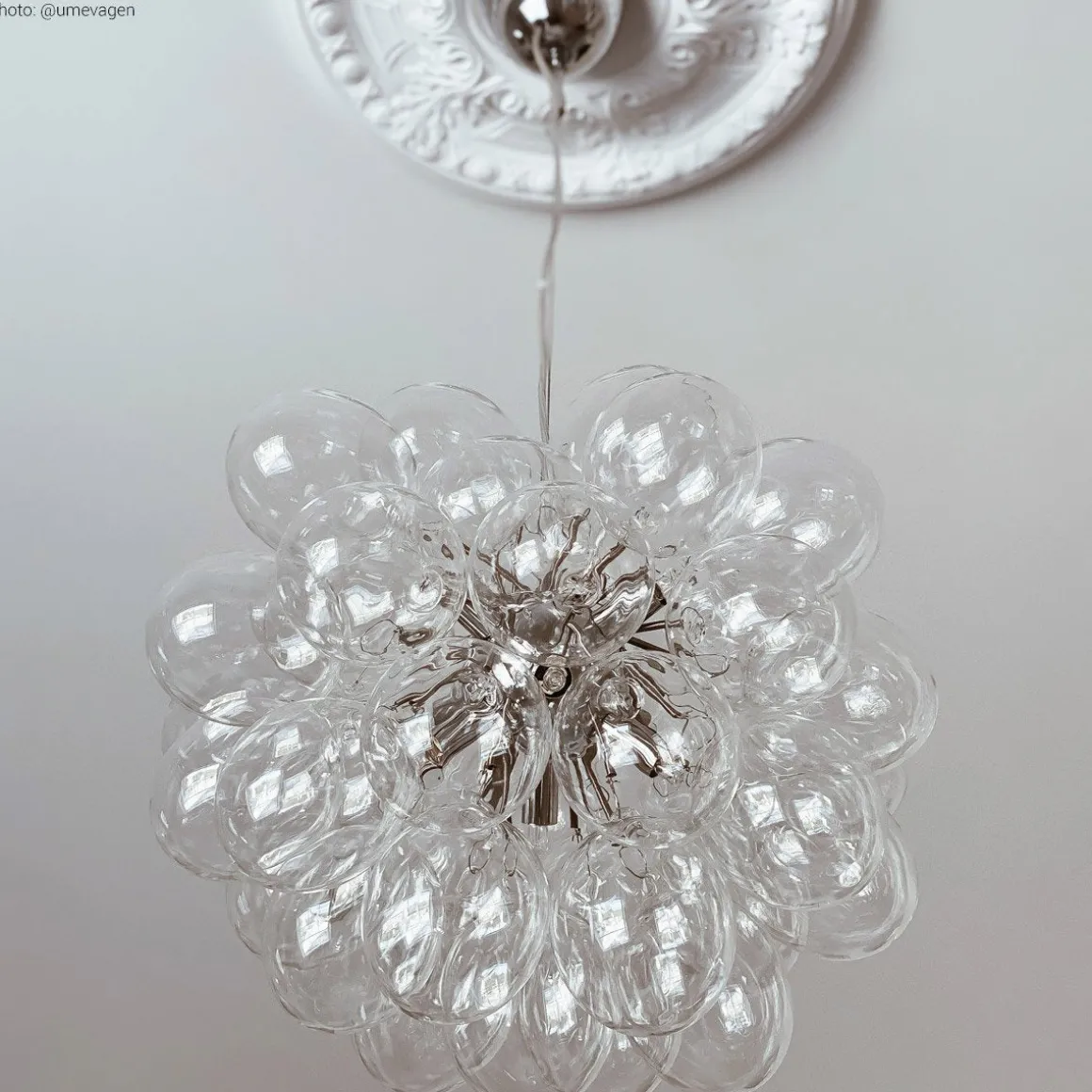 Unn deg høyden av luksus og stil med Gross taklampe Ø50cm, en svevende sky av 37 lette, munnblåste glassklokker som ligner atomer og avgir et herlig skinn. Gross er By Rydéns egen serie og et blikkfang i nettbutikken vår. Lampen finnes flere farger; Matt hvitt, Ravgult, Røykgrått, Flerfarget och Nacreous.