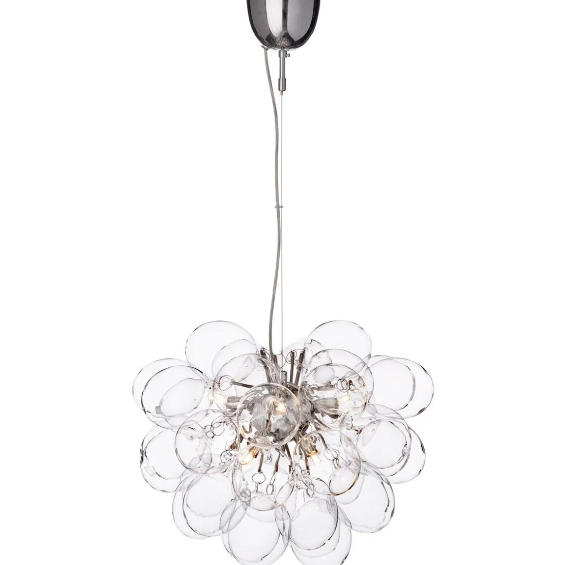 Lampen er 50 cm i diameter og kan heves og senkes. Ledningens samlede lengde er 120 cm. Lyskilder med G9-sokkel kjøpes separat. Hvis et glass skulle gå i stykker, går det an å kjøpe reserveglass senere.