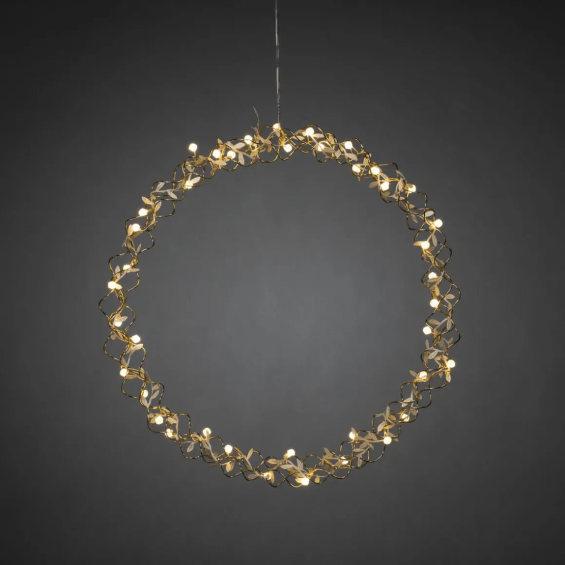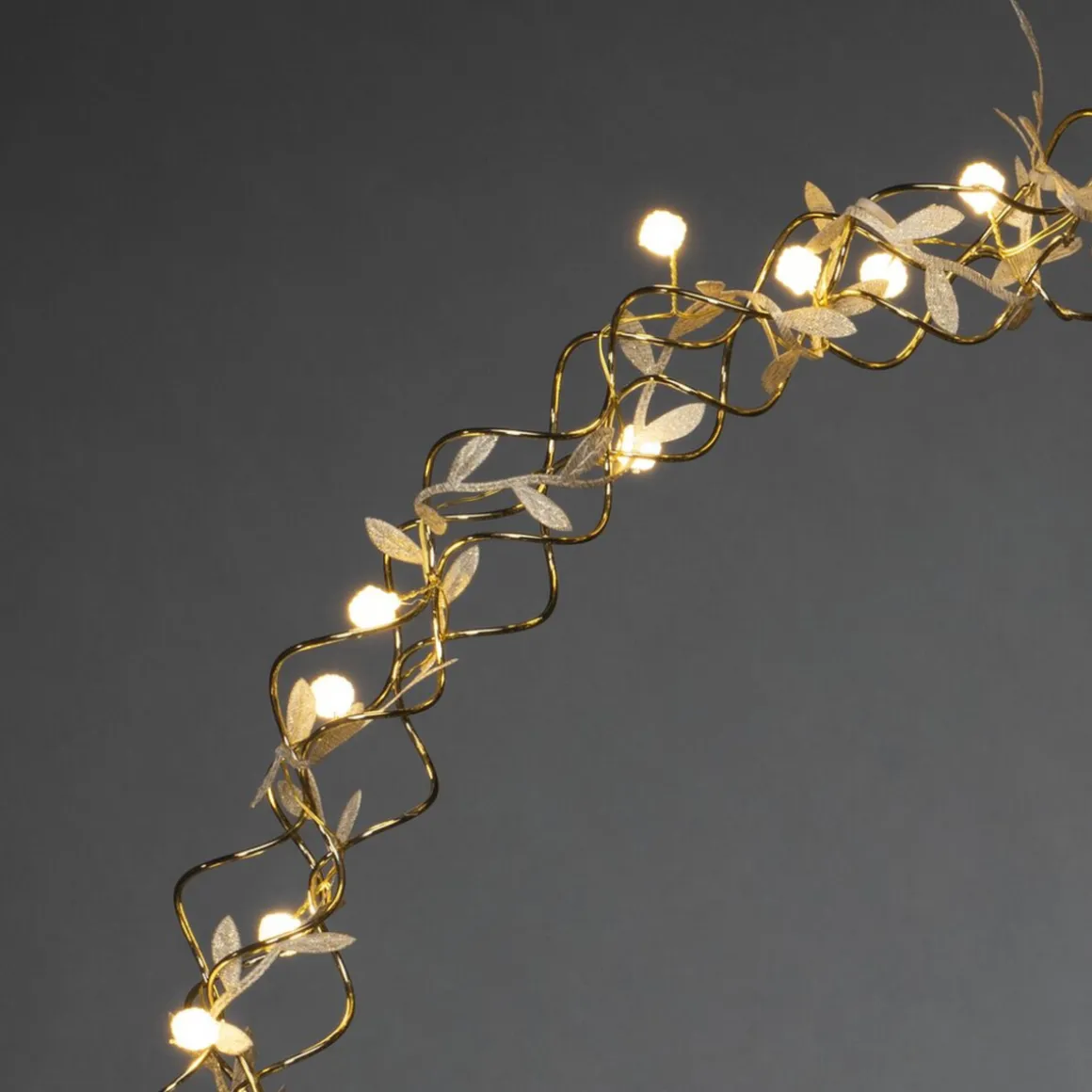 Gullfarget metallkrans med varme farget LED gjennomsiktig ledning.