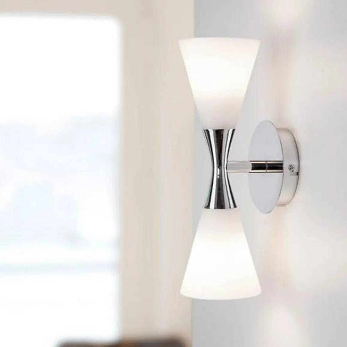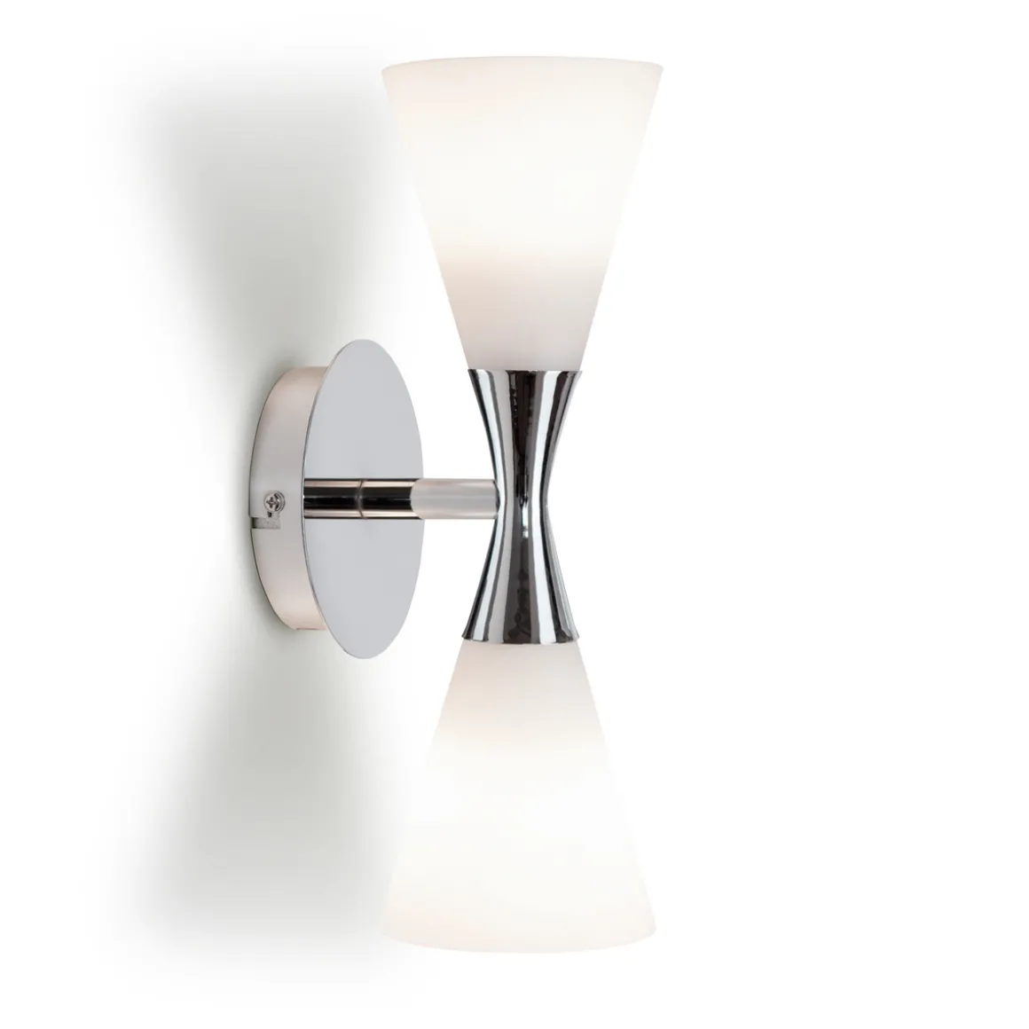Dekorativ vegglampe fra Hersdal med dobbelt lys og nydelige kromdetaljer.