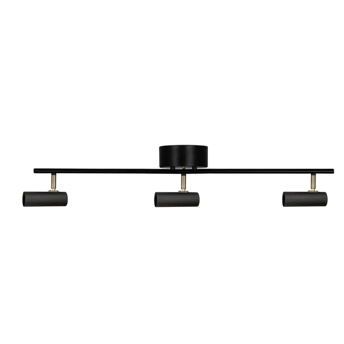 Hubble er et moderne tak med rørformede og ribbede metallskjermer. Skjermene kan vinkles vertikalt og sideveis. Lampen er laget av mattsort lakkert metall med detaljer i messingfarget metall. Den horisontale metallstangen er 80 cm lang og takkoppen er 13 cm i diameter.