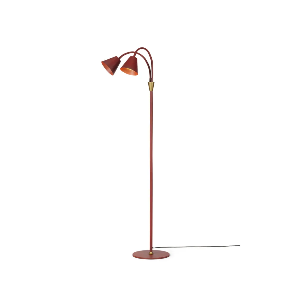 Gulvlampen har to individuelle av/på knapper, slik at du kan velge å slå på begge armene samtidig eller velge å ha bare en arm tent. Lampen har også en elegant messingdetalj som gir den et luksuriøst utseende.