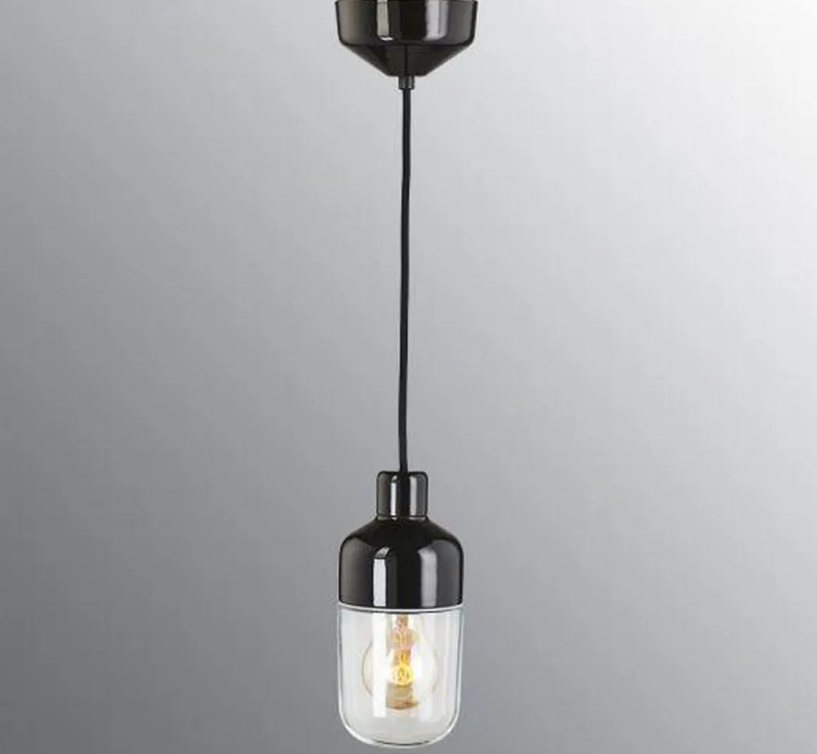 Utstyrt med tekstilkabel (2m) med porselen takkopp