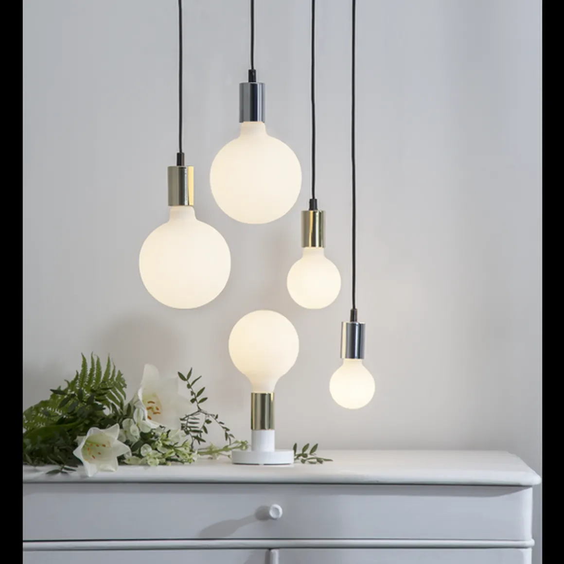 Opal Illumination Globe-lyspæren er opalhvit og gir et jevnt og behagelig lys. Nydelig å benytte i både bordlamper, vegglamper og takpendler.