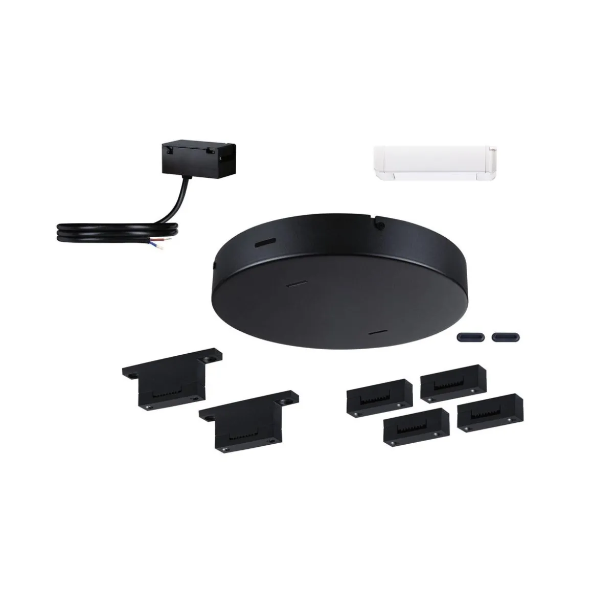 60 Watt installasjonssettet til ULine-systemet gir det perfekte grunnlaget for en tilpasset belysnings installasjon. Dette omfattende settet inneholder alt du trenger for å komme i gang: klemmer, den rette braketten, endestykker, et transformator deksel og en kraftig transformator. Belter, lys og andre fester kan legges til individuelt etter behov, noe som sikrer maksimal fleksibilitet og kreativ frihet